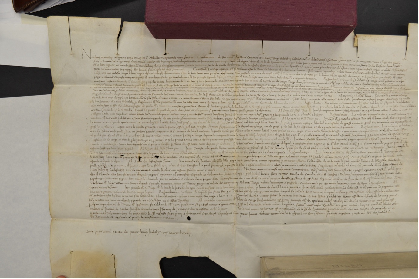 Οἱ πληροφορίες ποὺ ἀφοροῦν τὴν ἐκδίκαση ἀπὸ τὸν βενετὸ ἀξιωματοῦχο τῶν Κυθήρων τῆς ὑπόθεσης μὲ ἐνάγοντα ἕναν ἀγρότη ποὺ ζητοῦσε ἀποζημίωση γιὰ τὸ κλεμμένο βόδι του ἀγγίζουν μιὰν ὄψη τῆς ζωῆς τοῦ ἀγροτικοῦ πληθυσμοῦ. Τὰ ἀρχειακὰ τεκμήρια γιὰ τὴν ἱστορία τοῦ νησιοῦ στὴ διάρκεια τῆς πρώτης περιόδου τῆς λατινοκρατίας εἶναι γνωστὸ πὼς εἶναι λιγοστά, ἐνῶ οἱ μαρτυρίες γιὰ τὴ γνώση τῆς κυθηραϊκῆς κοινωνίας αὐξάνονται καθὼς προχωροῦμε στοὺς ὕστερους αἰῶνες τῆς βενετικῆς κατοχῆς. Ἀπὸ τὴν ἄποψη αὐτὴ εἶναι συνεπῶς εὐπρόσδεκτα ὅσα ἄγνωστα ἔγγραφα τῆς πρωτολατινικῆς ἐποχῆς ἔρχονται στὸ φῶς, προσθέτοντας νέες ψηφίδες στὴν παλίμψηστη στρωματογραφία τῆς κυθηραϊκῆς ἱστορίας. Μὲ ἰδιαίτερη λοιπὸν εὐχαρίστηση παρουσιάζω δύο νέα ἀρχειακὰ εὑρήματα ἀπὸ τὸ κρατικὸ ἀρχεῖο τῆς Βενετίας (Procuratori di San Marco. Misti.Miscellanea Pergamene, b.46), τὰ ὁποῖα μὲ τὶς εἰδήσεις ποὺ προσφέρουν ἐπιτρέπουν νὰ κατανοήσουμε καλύτερα τὰ προβλήματα ποὺ βίωναν οἱ Κυθήριοι τὸν 15ο αἰώνα.