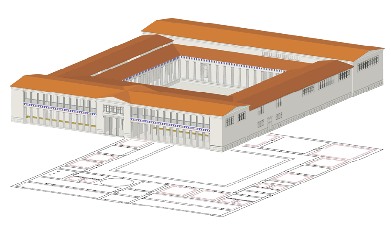 Είναι η ψυχή του κτιρίου, το ιερό κέντρο το οποίο ζωντανεύει με την είσοδο του καθενός σε αυτό. Μπαίνοντας κάποιος στο περιστύλιο γίνεται ο περιούσιος, εκλογικεύει το άλογο σύμπαν και το εκλογικεύει με τον ωραιότερο δυνατό τρόπο, τις χρυσές τομές. Όταν το κατάλαβα αυτό λύθηκε και η τεράστια φιλοσοφία που είναι από πίσω» σχολιάζει και μιλά για τη μεταφορά της ιδέας αυτής σε άλλες περιοχές.