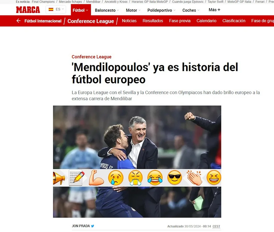Γράφει η ισπανική εφημερίδα χαρακτηριστικά: «Ο τελικός ήταν μια Οδύσσεια…. αλλά ο Μεντιλιμπάρ, όπως και ο Οδυσσέας, κατάφερε να επιστρέψει στην πατρίδα του. Ο Ισπανός προπονητής είναι στην ιστορία του ευρωπαϊκού ποδοσφαίρου. Οδήγησε την ομάδα της Σεβίλλης που βρισκόταν σε κρίση να σηκώσει το Europa League το 2023 και επανέλαβε το κατόρθωμα με τον Ολυμπιακό ένα χρόνο αργότερα σε ευρωπαϊκή διοργάνωση».
