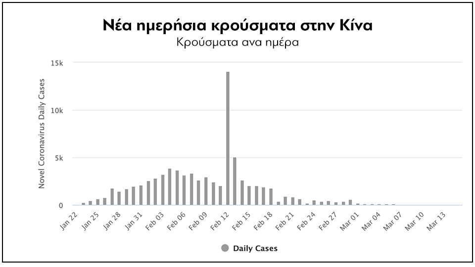 Διάγραμμα 1: Νέα ημερήσια κρούσματα στην Κίνα εδώ