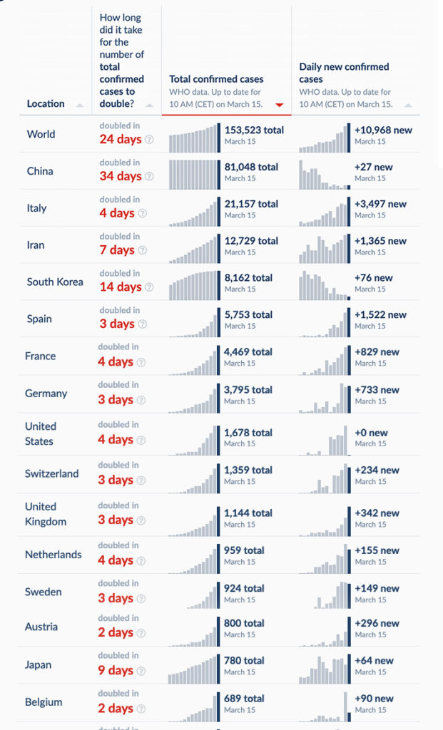 Διότι ο κορονοϊός έχει πλέον διαχυθεί ευρέως σε όλες τις χώρες της Ευρώπης εξελισσόμενος εκθετικά. Πλέον οι διαφορές μεταξύ των χωρών είναι θέμα ημερών και πρέπει να λάβουν δραστικά μέτρα για να περιορίσουν την εξάπλωση του ιού. Γι’ αυτό σύντομα όλη η Ευρώπη «θα έχει κλείσει».