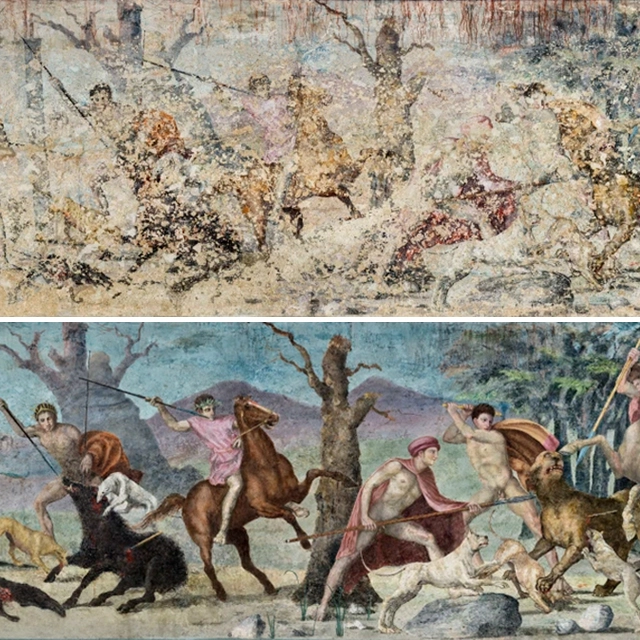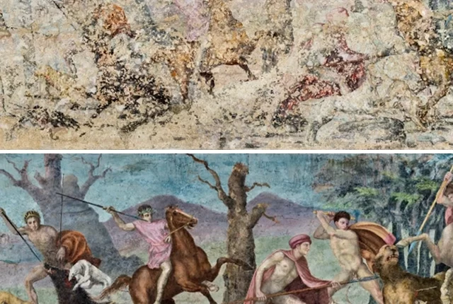 Δείτε πως ήταν η τοιχογραφία με το κυνήγι από τον τάφο του Φιλίππου Β’ στη Βεργίνα