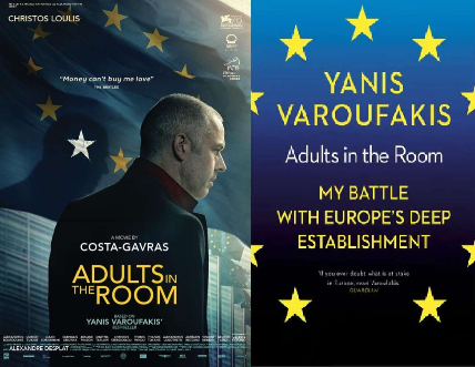 Ο Γιάνης Βαρουφάκης όπως τον υποδύθηκε ο Χρήστος Λούλης στην ταινία του Κώστα Γαβρά «Ενήλικοι στην Αίθουσα» (Adults In the Room), η οποία βασίστηκε στο βιβλίο του πρώην ΥΠΟΙΚ και o τίτλος στη φράση της Λαγκάρντ μετά το Eurogroup της 18ης Ιουνίου 2015