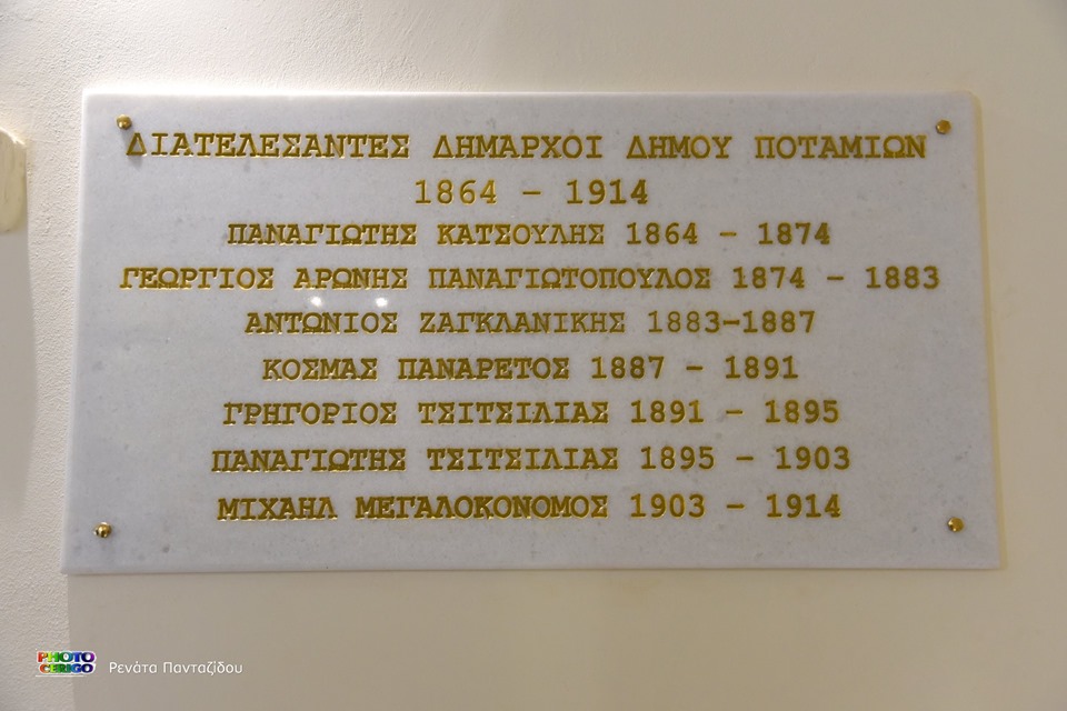 Στον πρώτο όροφο έχουν διαμορφωθεί γραφεία διοικητικών υπηρεσιών όπου θα μεταφερθεί το ΚΕΠ, γραφείο Δημάρχου, αίθουσα εκδηλώσεων, χώροι υγιεινής για ΑμΕΑ, ενώ αναμένεται η χρηματοδότηση από το πρόγραμμα LEADER για τη διαμόρφωση της δυτικής αίθουσας σε μόνιμο εκθεσιακό χώρο για το λειτουργικό μοντέλο του Μηχανισμού των Αντικυθήρων, που θα αποτελέσει ένα από τα σημαντικότερα σημεία τουριστικού ενδιαφέροντος στο νησί. Επίσης, έχει τοποθετηθεί μαρμάρινη επιγραφή με τα ονόματα των διατελεσάντων Δημάρχων του Δήμου Ποταμίων της περιόδου 1864-1914.