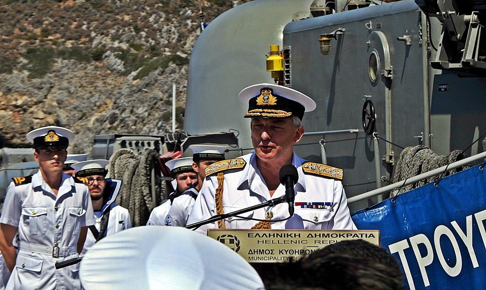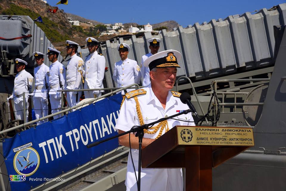 Στη συνέχεια έγινε ρίψη στεφάνων στη θάλασσα από την ΤΠΚ ΤΡΟΥΠΑΚΗΣ, ενώ τα παριστάμενα πολεμικά σκάφη της Μεγάλης Βρετανίας και της Ελλάδος απέδιδαν τιμές. Αξίζει να σημειωθεί ότι ο Δήμαρχος Κυθήρων ανέγνωσε και το μήνυμα της Α.Ε. του Προέδρου της Δημοκρατίας κ. Προκοπίου Παυλοπούλου, ο οποίος ήταν προγραμματισμένο να παραστεί στην εκδήλωση, αλλά δεν παρέστη λόγω των γεγονότων στην Αττική.