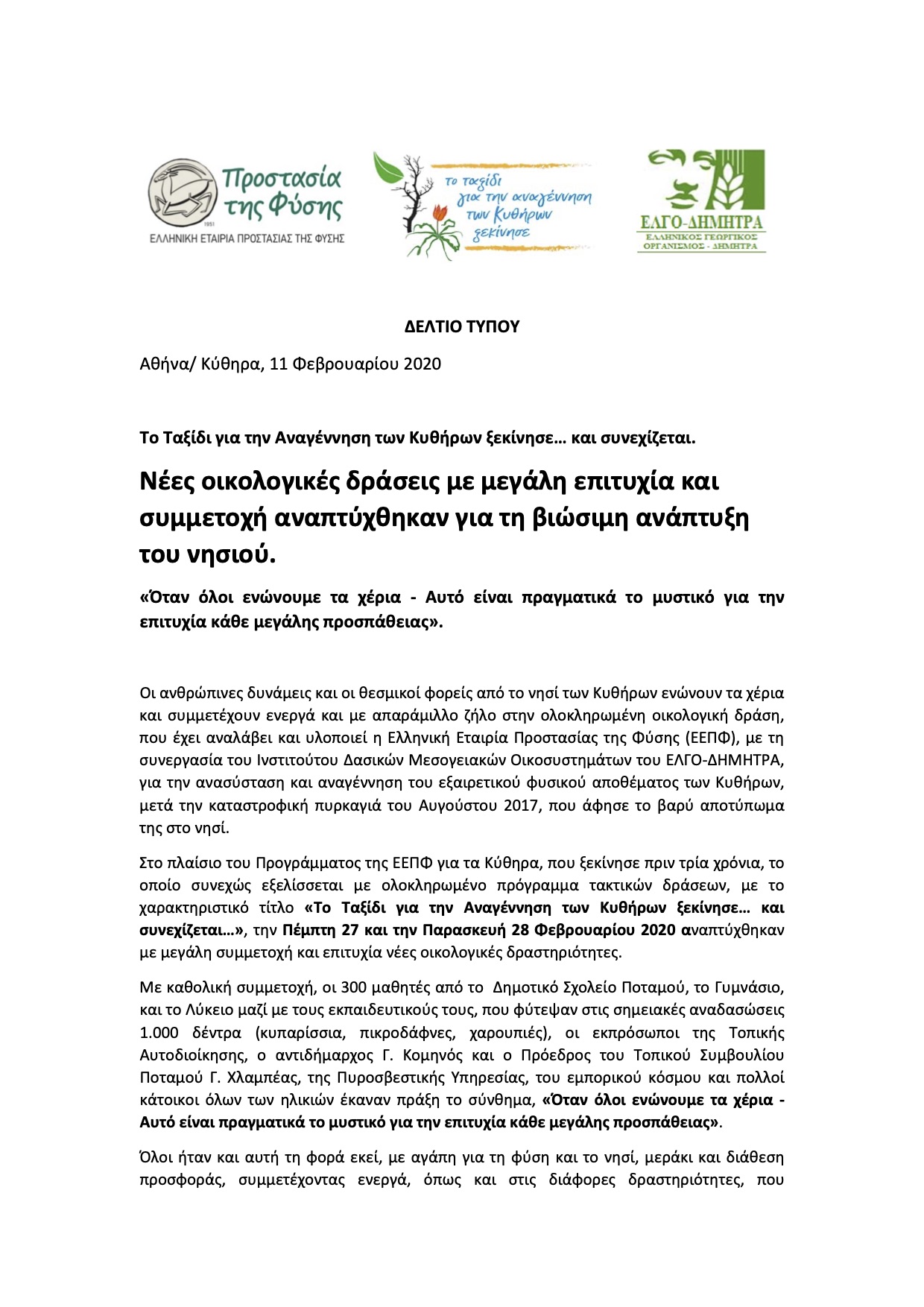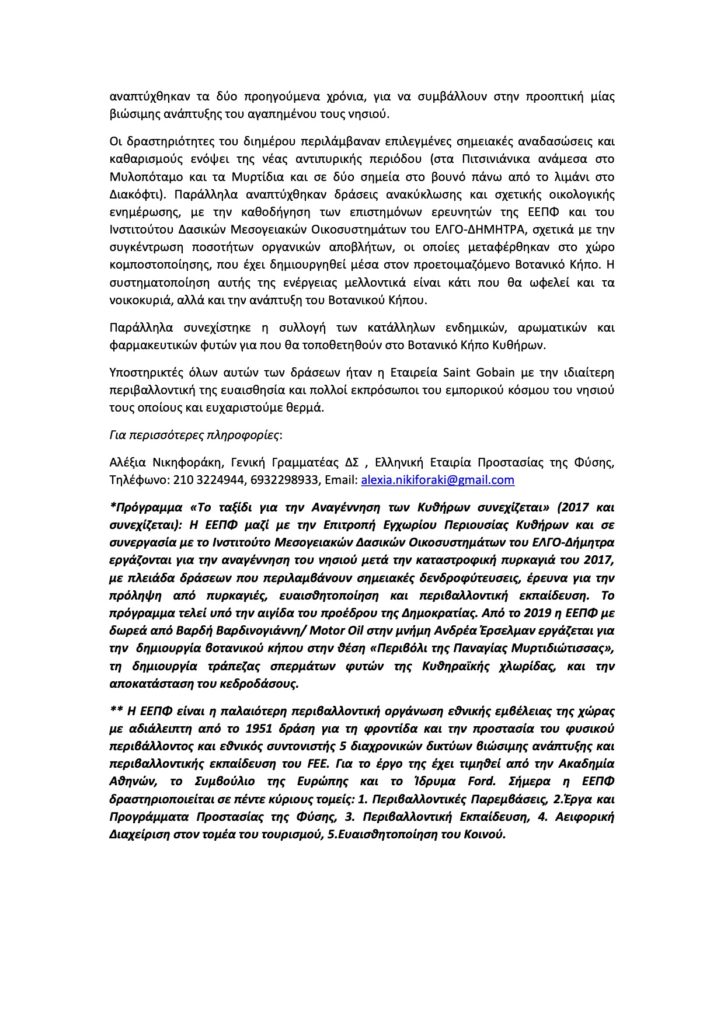 - Δελτίο τύπου ΕΕΠΦ – Νέες Οικολογικές Δράσεις για τη Βιώσιμη Ανάπτυξη του Νησιού