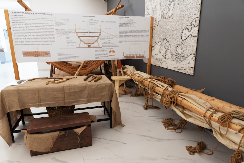 Στο Ναυτικό Μουσείο της Ελλάδος εκτίθενται από την Τρίτη 1η Οκτωβρίου η πειραματική κατασκευή τμήματος εικοσάκωπου μυκηναϊκού πλοίου (εικοσόρου) σε φυσικό μέγεθος (1:1), μαζί με ανακατασκευασμένα εργαλεία ναυπηγικής της Εποχής του Χαλκού. Στόχος της έκθεσής τους είναι η βιωματική προσέγγιση των συμπερασμάτων της επιστημονικής έρευνα για τις τεχνικές ναυπήγησης που εφάρμοζαν οι Μυκηναίοι καραβομαραγκοί. Η παρουσίαση των πειραματικών ανακατασκευών θα γίνει από ειδικούς επιστήμονες κατά την διάρκεια της εκδήλωσης.