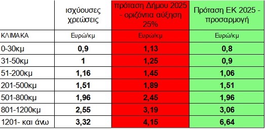 - Παραμονή των ίδιων χρεώσεων για τις κλίμακες 201-800κμ