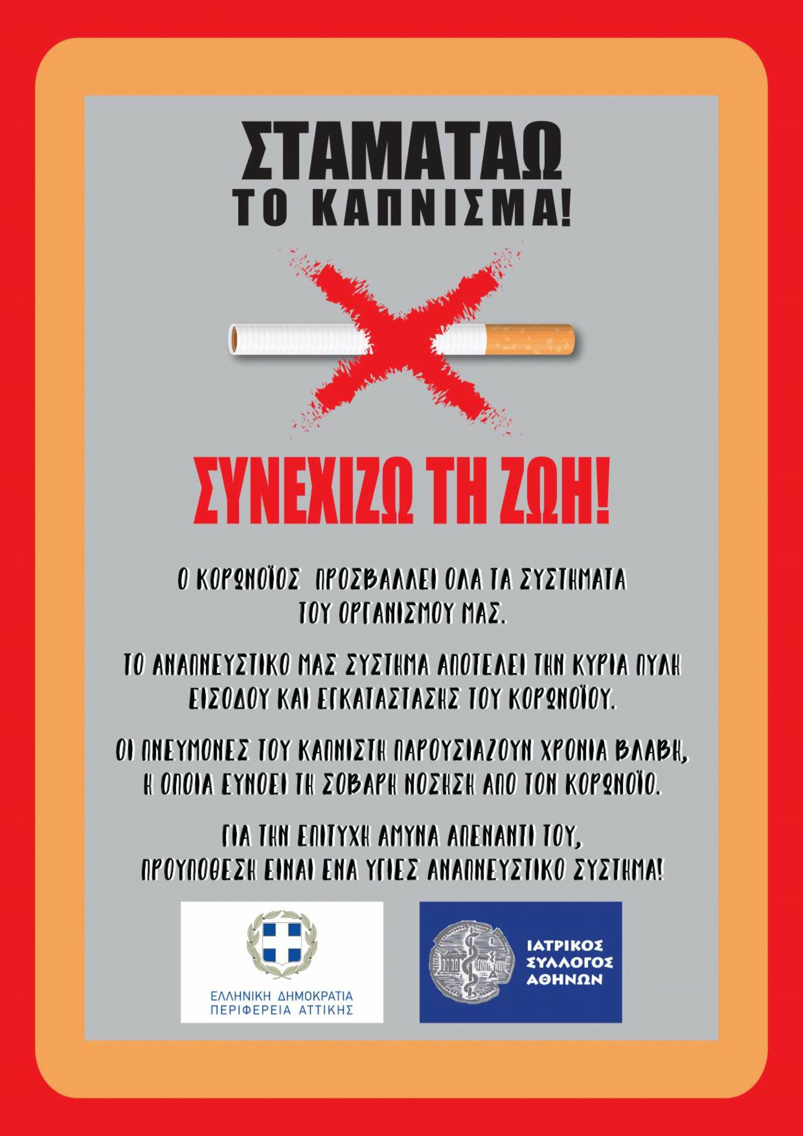 Το δεύτερο φυλλάδιο αναφέρεται στη σύνδεση του καπνίσματος με τις σοβαρές επιπλοκές της Covid-19 και καλεί τους πολίτες να διακόψουν το κάπνισμα.