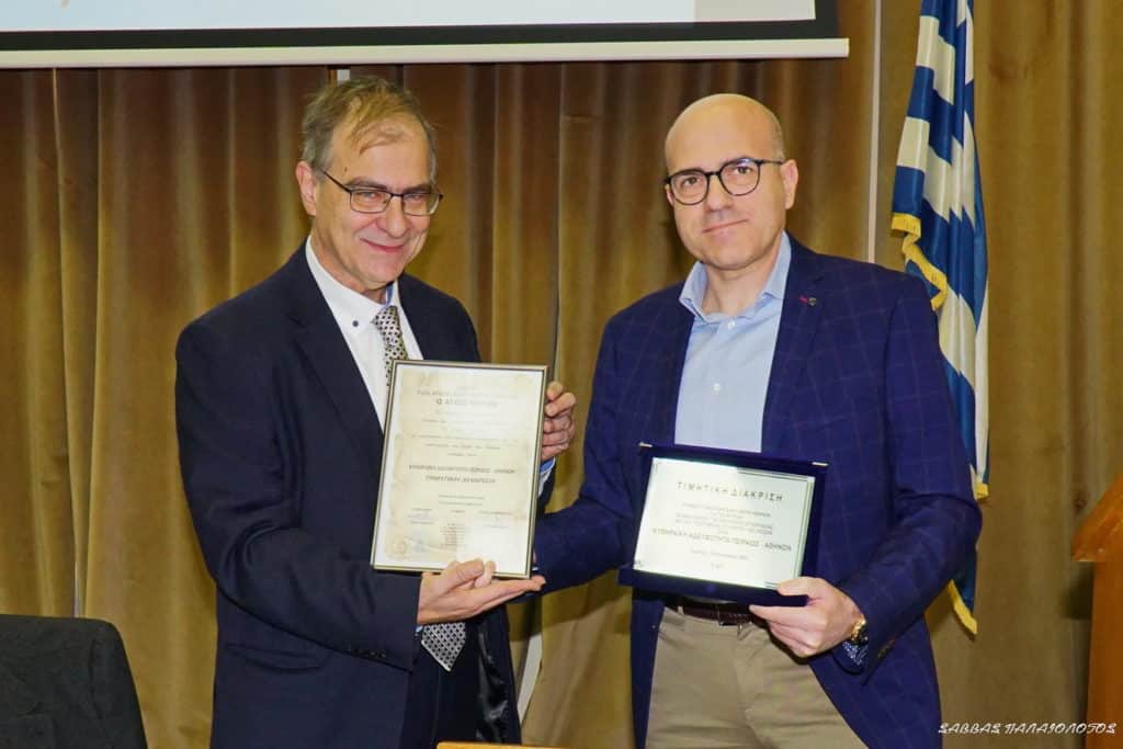 Στο πρώτο μέρος της εκδήλωσης απονεμήθηκε τιμητική πλακέτα στην Κυθηραϊκή Αδελφότητα Πειραιώς – Αθηνών για την καλή συνεργασία και υποστήριξη προς την Ενωση καθώς και τιμητικές διακρίσεις σε πρόσωπα που προσέφεραν στα Αντικύθηρα και στην Ένωση για την προσφορά τους.