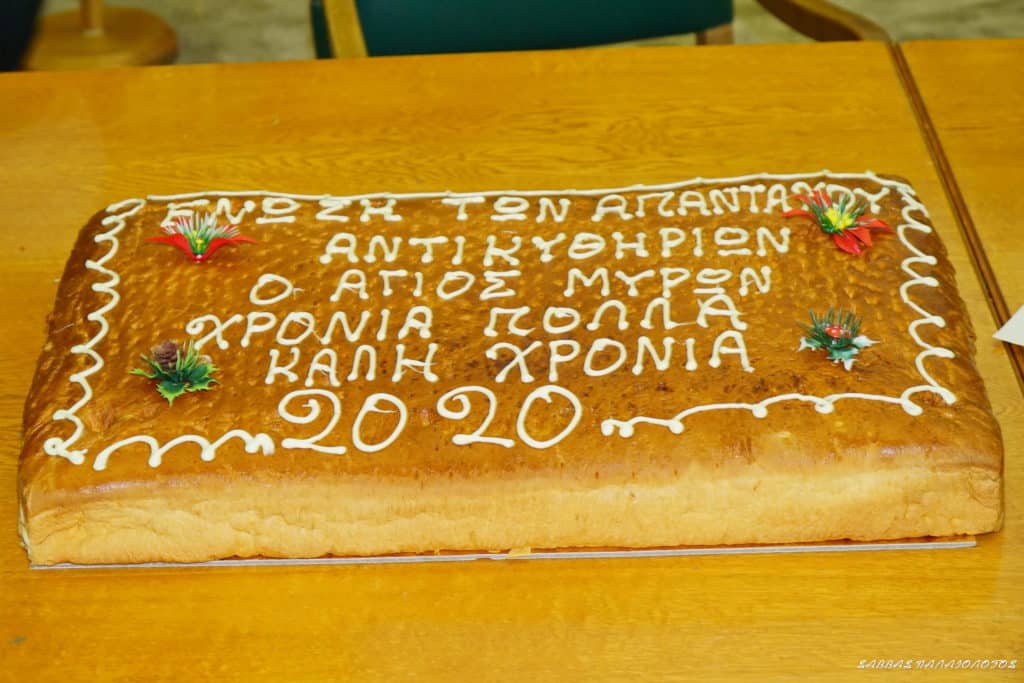 Την ετήσια Γενική Συνέλευση και την κοπή της πρωτοχρονιάτικης πίτας της, πραγματοποίησε η Ένωση των Απανταχού Αντικυθηρίων «Ο ΑΓΙΟΣ ΜΥΡΩΝ», το πρωί της Κυριακής 19 Ιανουαρίου 2020, στην αίθουσα Γεώργιος Κασιμάτης του Ε.Β.Ε.Π στον Πειραιά.