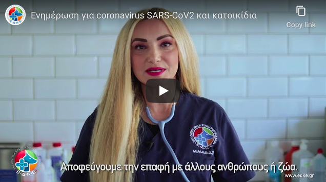 Διανύουμε μία δύσκολη περίοδο που δημιουργεί ανησυχία. Η Εθελοντική Δράση Κτηνιάτρων Ελλάδας (Ε.Δ.Κ.Ε.), πάντα δίπλα στα ζώα και στην κοινωνία, μέσα από το συγκεκριμένο video θέλει να δώσει τις βασικές οδηγίες για το πώς πρέπει να φερόμαστε στα ζώα, οικόσιτα και αδέσποτα, και να διαδώσει το μήνυμα ότι τα ζώα δεν νοσούν από τον κορονοϊό SARS-Cov2.