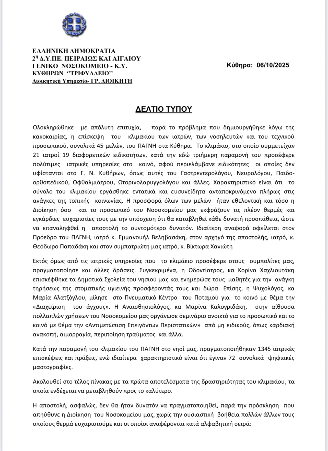 - ΔΕΛΤΙΟ ΤΥΠΟΥ ΓΝ ΚΥ ΚΥΘΗΡΩΝ 06-10-2025