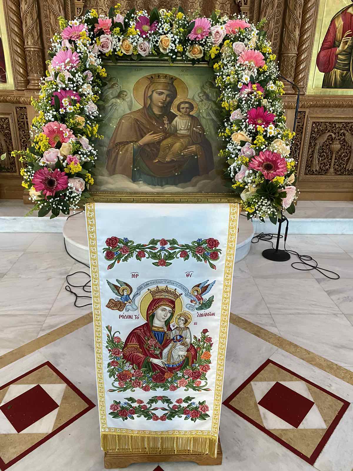 Η κ. Καλοκαιρινού προσέφερε, ως άλλωστε κατ’ έτος πράττει αφειδώς, τον ανθοστολισμό της εικόνος της Υπεραγίας ημών Θεοτόκου κατά την διάρκεια των Χαιρετισμών, συμβάλλουσα διά του τρόπου αυτού εις την περικόσμηση της Ιεράς Εικόνος της Αειπαρθένου ημών Μητρός, «Ἥτις ἐγκαλλώπισμα καί καύχημα πάντων ἡμῶν ἐστι», ως και εις τον εν γένει καλλωπισμό του Ιερού μας Ναού.