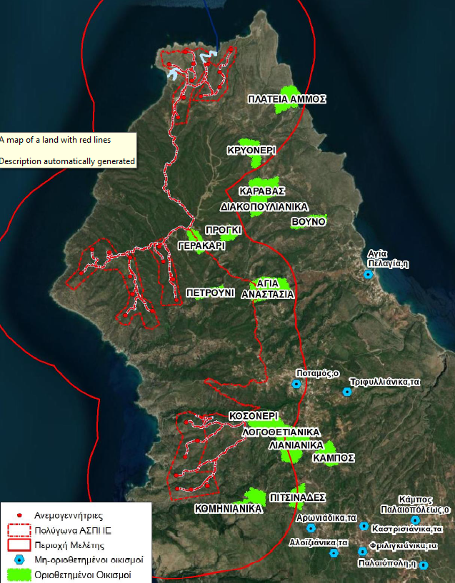 Στις 11-4-25 υποβάλλεται στο Υπουργείο Περιβάλλοντος και Ενέργειας από την κοιναπραξία ΤΕΡΝΑ ΕΝΕΡΓΕΙΑΚΗ Α.Β.Ε.Τ.Ε-VECTOR ΑΙΟΛΙΚΑ ΠΑΡΚΑ ΕΛΛΑΔΟΣ και διακριτικό τίτλο ΑΙΟΛΙΚΟ ΠΑΡΚΟ ΤΡΟΥΛΛΟΣ Ο.Ε Μελέτη Περιβαλλοντικών Επιπτώσεων (Μ.Π.Ε) για το έργο ‘’Συγκρότημα τριών (3) (ΑΣΠΗΕ) συνολικής εγκατεστημένης ισχύος 135MW και μέγιστης αποδιδόμενης ισχύος 131,42MW στις θέσεις ‘ΚΑΡΒΟΥΝΟΛΑΚΚΟΣ – ΦΟΙΝΙΚΙΕΣ’ (31,5 MW), ‘ΚΟΡΔΕΛΙΔΕΣ’ (51,96 MW) & ‘ΞΕΡΟΚΑΜΠΙΑ’ (47,9MW)’’ το οποίο ανήκει λόγω του μεγέθους του στην πιο ΄΄βαριά΄΄ κατηγορία έργων προς αδειδότηση, την Α1. Αξίζει να σημειωθεί ότι το συγκεκριμένο έργο είναι το μοναδικό αυτή τη στιγμή έργο κατηγορίας Α1 σε όλη την περιφέρεια Αττικής. Πρόκειται για 30 ανεμογεννήτριες ισχύος 4,5MW με διάμετρο ρότορα στα 136m και ύψος πυλώνα 82m και με συνολική ισχύ 135 MW! Οι ανάγκες του νησιού σε ηλεκτρική ισχύ σύμφωνα με το ΣΔΑΕ του Δήμου Κυθήρων είναι 4 μεγαβάτ