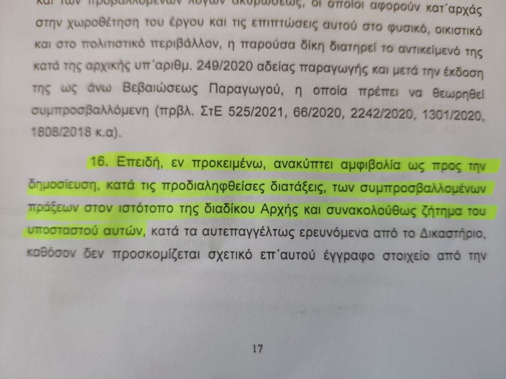 Είναι άξιο αναφοράς το γεγονός ότι και στις δύο περιπτώσεις, ο εισηγητής δικαστής πήρε ξεκάθαρα και τεκμηριωμένα, το μέρος του νησιού, δηλαδή των πολιτών και των σωματείων που είχαν καταθέσει τις αιτήσεις ακύρωσης. Μπορείτε να δείτε λεπτομέρειες για τις νομικές ακροβασίες του δικαστηρίου στην διεύθυνση