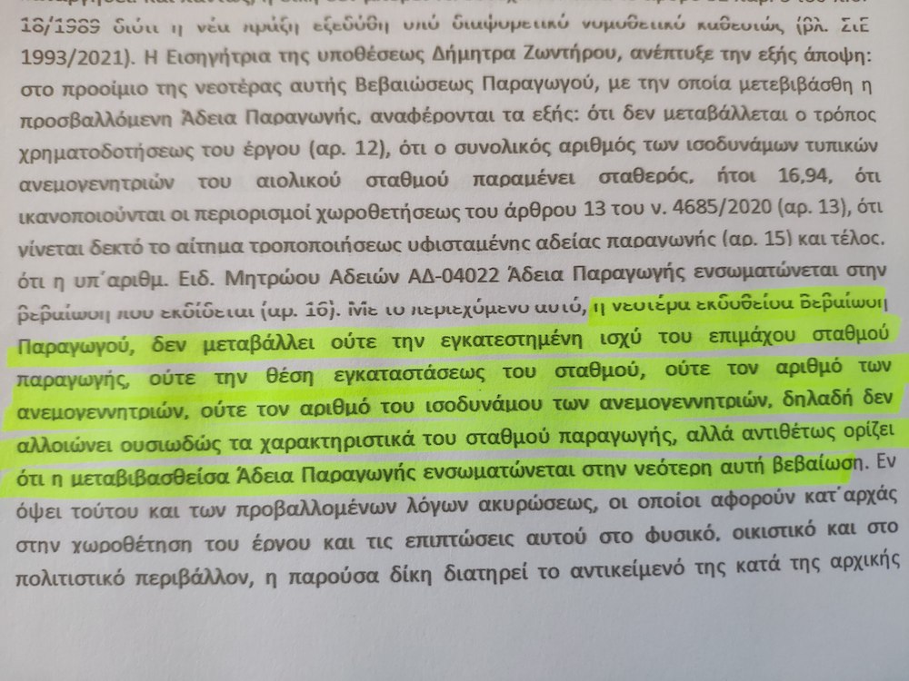 Στις 14-15 του Μάρτη 2023 εκδικάστηκαν στο Διοικητικό Εφετείο Αθηνών οι αιτήσεις ακύρωσης των Αδειών Παραγωγής ηλεκτρικής ενέργειας που είχαν δοθεί στις εταιρείες συμφερόντων ΕΛΛΑΚΤΩΡ (Αγία Πελαγία, Μυλοπόταμος) και ΚΟΠΕΛΟΥΖΟΥ (Φοινικίες και Μερμηγκάρης).