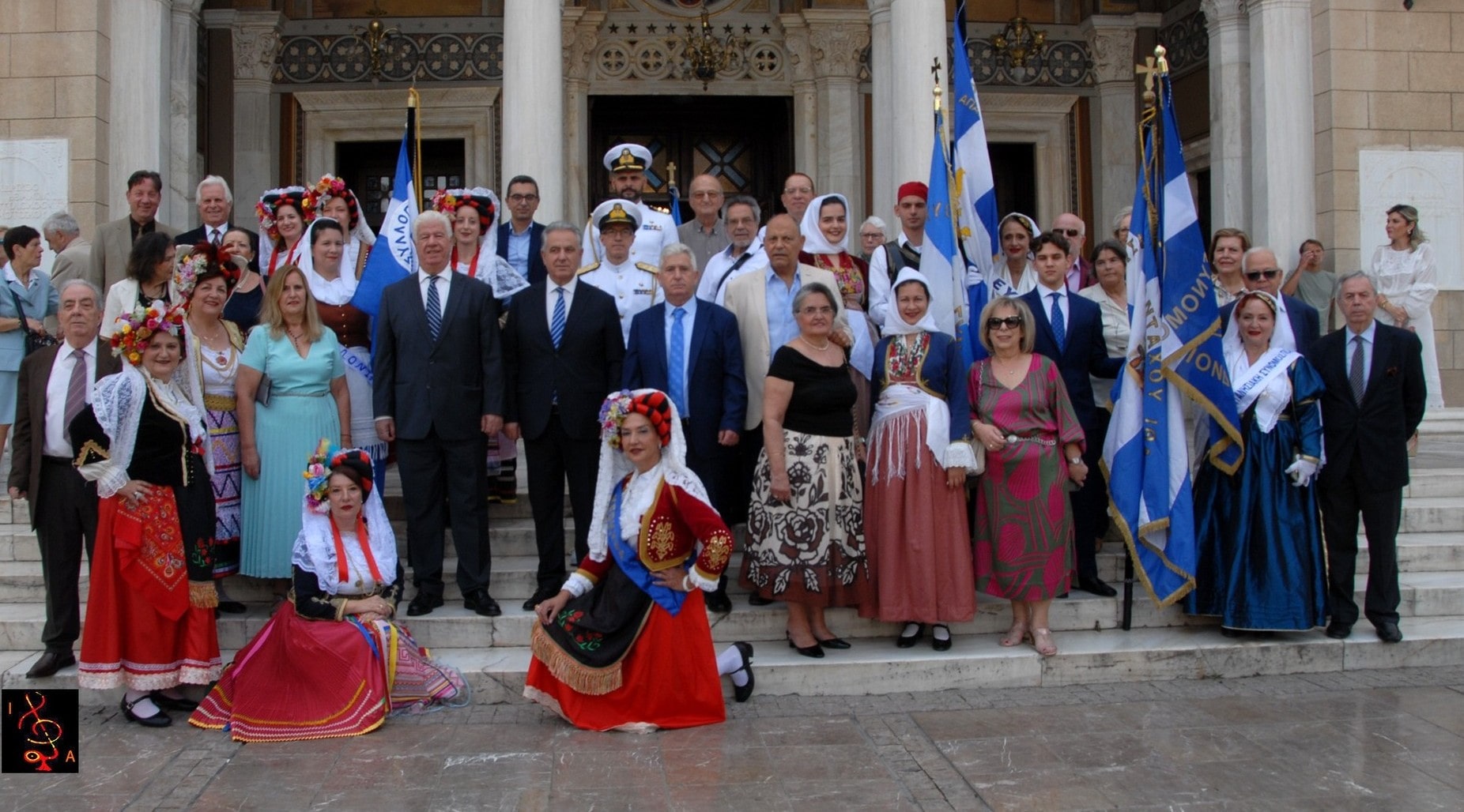 Το απόγευμα 7.00΄μ.μ. πραγματοποιήθηκε μεγαλοπρεπής εκδήλωση στον Πειραιά, στη Θεατρική Σκηνή του Πειραϊκού Συνδέσμου παρουσία εκπροσώπων Πολιτικής και Πολιτειακής ηγεσίας, της Τοπικής Αυτοδιοίκησης, του Υφυπουργού Ναυτιλίας και Νησιωτικής Πολιτικής κ. Στέφανου Γκίκα, εκπροσώπων Πολιτιστικών Φορέων και Σωματείων, Επτανησίων και φίλων των σωματείων μας και πλήθους κόσμου σε μια κατάμεστη αίθουσα! Η έναρξη έγινε με χαιρετισμό του Προέδρου της Επτανησιακής Συνομοσπονδίας κ. Χαράλαμπου Κοντογεώργη και του Υφυπουργού Ναυτιλίας και Νησιωτικής Πολιτικής κ. Στέφανου Γκίκα και στη συνέχεια εκφωνήθηκε ο Πανηγυρικός της ημέρας από τον Πρόεδρο της Εταιρείας ΛευκαδικώνΜελετών κ. Κωνσταντίνο Κατηφόρη με Θέμα:«ΕΠΤΑΝΗΣΙΑΚΟΣ ΠΑΤΡΙΩΤΙΣΜΟΣ ΚΑΙ ΜΑΧΟΜΕΝΗ ΔΗΜΟΚΡΑΤΙΑ»