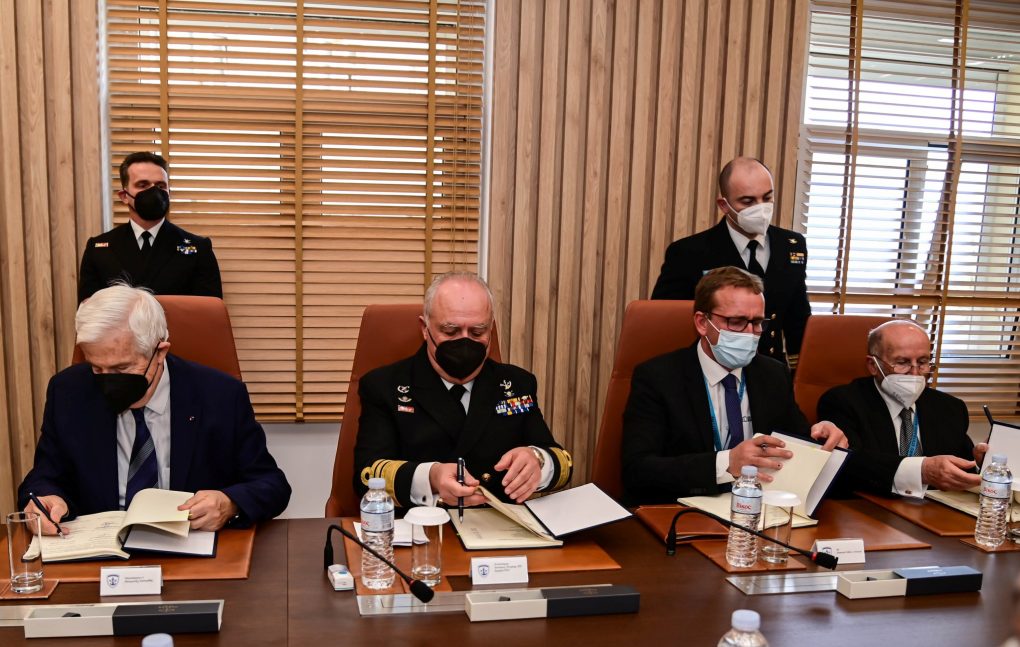 Η υπογραφή της σύμβασης από τον Πρόεδρος του Ιδρύματος Αικατερίνης Λασκαρίδη και Υποναύαρχο ε.τ. κ. Πάνο Λασκαρίδη, τον Αρχηγό ΓΕΝ Αντιναύαρχο Στυλιανό Πετράκη ΠΝ, τον Αντιπρόεδρο της εταιρείας “BAUDOUIN” κ. Εμμανουέλ Τελλιέ Λερνώ (Emmanuel Tellier–L‘Hernault), ως προμηθευτή, και τον Γενικό Διευθυντή της εταιρείας «Π. Θεοδωρόπουλος Επισκευές Πλοίων Ε.Π.Ε.» κ. Παναγιώτη Θεοδωρόπουλο, ως εγκαταστάτη.