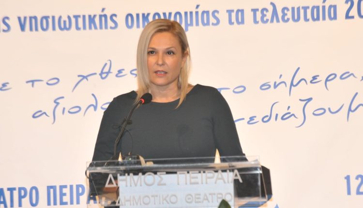 Στον χαιρετισμό της η Αντιπεριφερειάρχης αναφέρθηκε στη συμβολή της νησιωτικής οικονομίας στην ανάπτυξη του Ελληνικού Κράτους, υπογραμμίζοντας πως ήταν νησιώτες αυτοί που δημιούργησαν εξ αρχής το νέο ισχυρό εμπορικό ναυτικό πριν την επανάσταση. Μέσα από την προσφορά των περιουσιών τους στον αγώνα, μετέτρεψαν μία χώρα παρηκμασμένη ,σε μία ισχυρή ναυτιλιακή δύναμη .Τα επόμενα χρόνια οι νησιώτες πέραν από τη ναυτιλία πρωταγωνίστησαν και σε άλλους τομείς της οικονομίας, όπως η γεωργία, τα μεταλλεύματα, ο τουρισμός κ.α. Επομένως ιστορικά, η ατμομηχανή της εγχώριας οικονομίας στηρίχθηκε στο μοντέλο εξωστρεφούς ανάπτυξης των νησιών. Το παράδειγμα αυτό θα μπορούσαμε να το ακολουθήσουμε γόνιμα την επόμενη μέρα της πανδημίας.