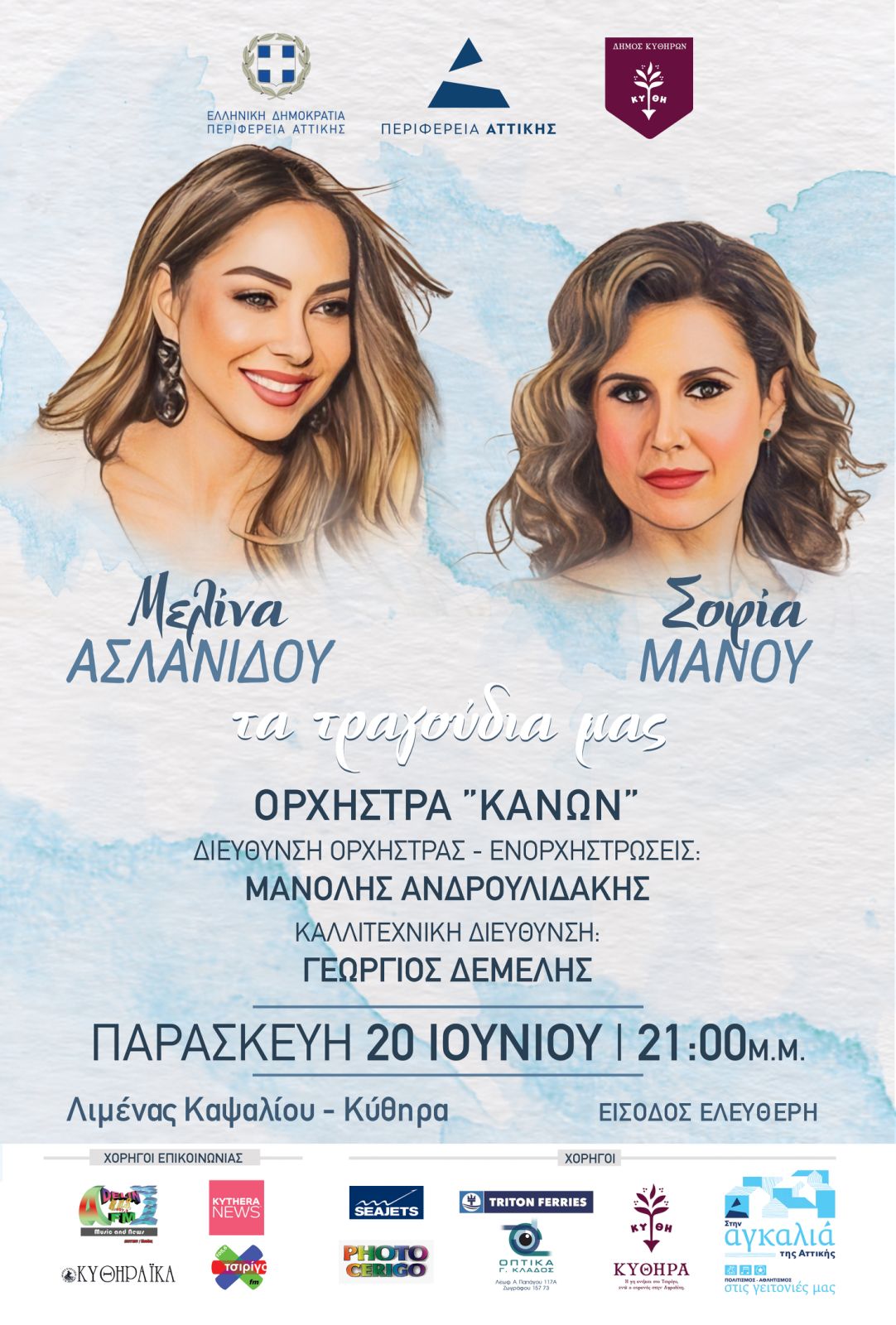 Η Περιφέρεια Αττικής και ο Δήμος Κυθήρων παρουσιάζουν μια ξεχωριστή μουσική βραδιά με τίτλο «Τα τραγούδια μας», την Παρασκευή 20 Ιουνίου 2025 και ώρα 21:00 στο ειδυλλιακό λιμάνι του Καψαλίου στα Κύθηρα.