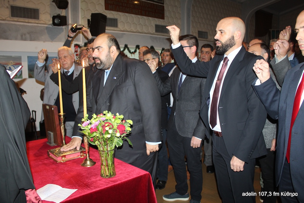 Οι δημοτικοί σύμβουλοι της μείζονος αντιπολίτευσης, οι Προέδροι Δημοτικών Κοινοτήτων και τα τακτικά μέλη συμβουλίων Δημοτικών Κοινοτήτων στον Δήμο Κυθήρων συμμετείχαμε στην ορκωμοσία της νέας Δημοτικής Αρχής. Από την θέση που μας ανέδειξαν οι πολίτες των νησιών μας δεσμευόμαστε να συμβάλλουμε με θετική διάθεση στην αντιμετώπιση των προβλημάτων. Εμείς θα υπηρετήσουμε το συλλογικό συμφέρον πέρα και έξω από προσωπικά συμφέροντα και επιδιώξεις, προτάσσοντας τις τεκμηριωμένες ρεαλιστικές προτάσεις μας, μακριά από λαϊκίστικες συμπεριφορές αλλά και με σταθερό μέτωπο απέναντι στην αλαζονεία και τον αυταρχισμό.