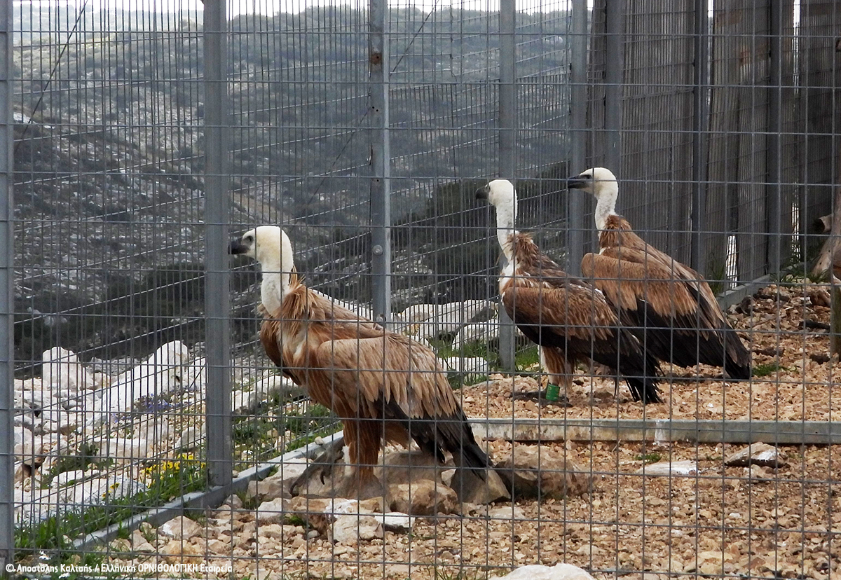 Για την επιτυχή υλοποίηση της δράσης απαιτήθηκε η συνεργασία πολλών φορέων: η αρχική περισυλλογή των εξουθενωμένων πουλιών έγινε με την ευθύνη του Μουσείου Φυσικής Ιστορίας Κρήτης που ανέλαβε και τη μεταφορά των πουλιών στις εγκαταστάσεις της οργάνωσης ΑΝΙΜΑ, η οποία ήταν υπεύθυνη για τη φροντίδα και τη μεταφορά τους στον ειδικό κλωβό προσαρμογής που έχει κατασκευάσει η Μονάδα Διαχείρισης (ΜΔ) Εθνικού Πάρκου Μεσολογγίου και Προστατευόμενων Περιοχών Δυτικής Στερεάς Ελλάδας του ΟΦΥΠΕΚΑ. Μετά από προσαρμογή λίγων εβδομάδων στο νέο τους περιβάλλον, στα τρία πουλιά τοποθετήθηκαν δορυφορικοί πομποί από την ΟΡΝΙΘΟΛΟΓΙΚΗ, με σκοπό τόσο την παρακολούθηση της ομαλής ένταξής τους στον τοπικό πληθυσμό, αλλά και τη συλλογή πρόσθετων πληροφοριών σχετικά με τις περιοχές που χρησιμοποιούν οι γύπες για τροφοληψία και κούρνιασμα.