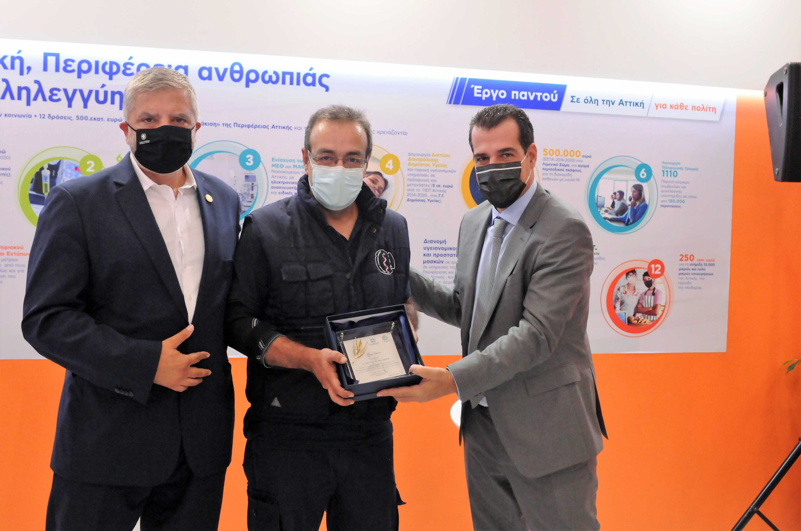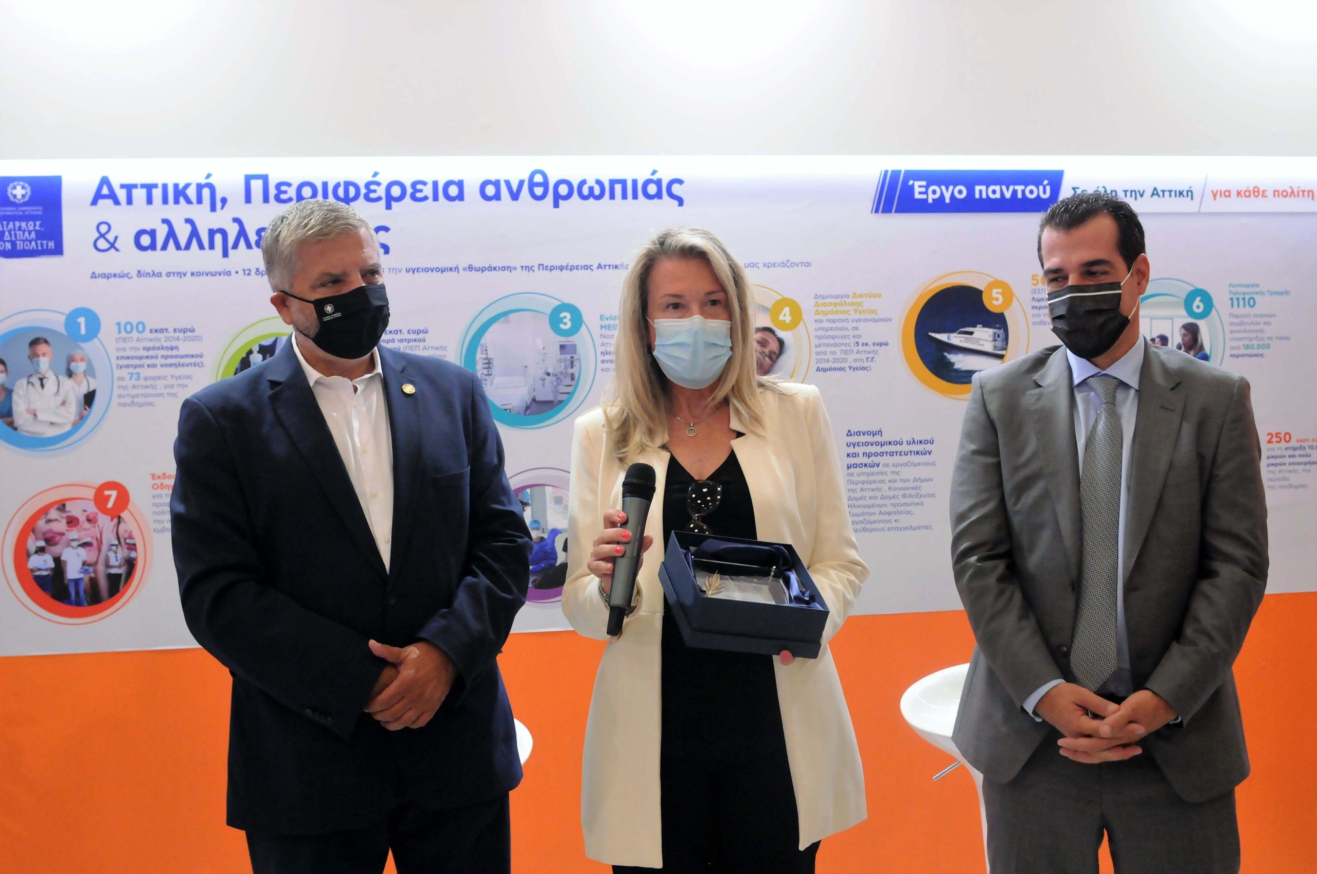 Στο πλαίσιο της διοργάνωσης της 85ης Διεθνούς Έκθεσης Θεσσαλονίκης σε ειδική τιμητική εκδήλωση που πραγματοποιήθηκε στο Περίπτερο της Περιφέρειας Αττικής, με προσκεκλημένο τον Υπ. Υγείας Αθ. Πλεύρη, ο Περιφερειάρχης Αττικής Γ. Πατούλης και ο Υπουργός απένειμαν βραβεία σε Ιατρούς και νοσηλευτές που συνέδραμαν εθελοντικά στις δράσεις της Περιφέρειας για την καταπολέμηση της πανδημίας, μέσω του Κέντρου Επιχειρήσεων (ΚΕΠΙΧ) που συστάθηκε από την Περιφέρεια και τον Ιατρικό Σύλλογο Αθηνών.