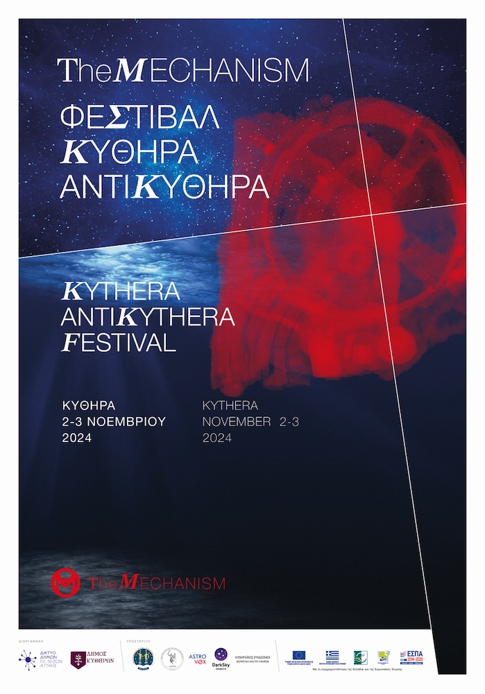 Ξεκινά αύριο Σάββατο, 2/11/2024, το φεστιβάλ The Mechanism 2024, παρουσιάζοντας φέτος μια σειρά εκδηλώσεων στα Κύθηρα, 2-3 Νοεμβρίου, με αφορμή και αντικείμενο τον περίφημο Μηχανισμό των Αντικυθήρων. Μέσα από τις ενημερωτικές εκδηλώσεις και τις υπόλοιπες δράσεις θα φωτιστούν πτυχές του μηχανισμού από σημαντικούς επιστήμονες, ερευνητές και αστρονόμους, ενώ θα διερευνηθεί το πώς μπορεί ο μηχανισμός να ενταχθεί αρμονικά στην επιστημονική, πολιτιστική και περιβαλλοντική ταυτότητα των Κυθήρων και Αντικυθήρων.