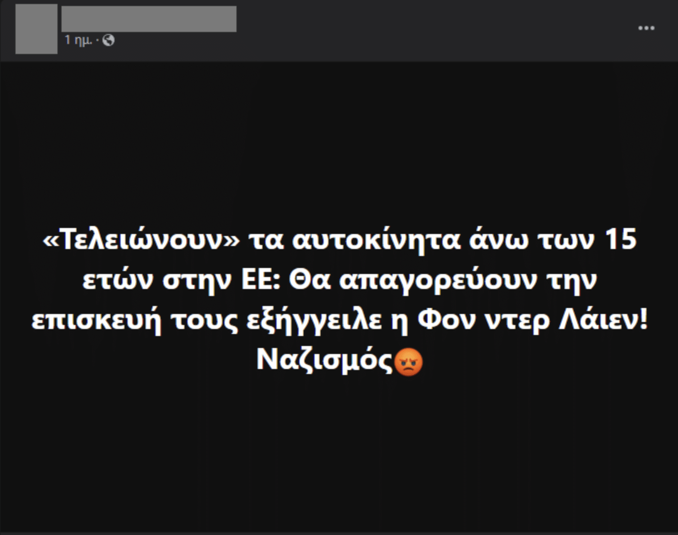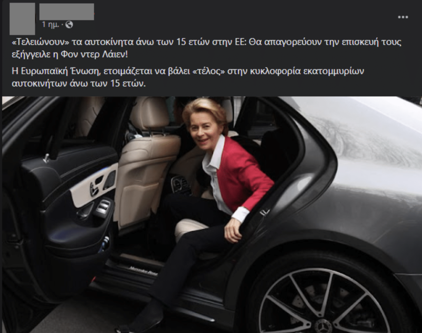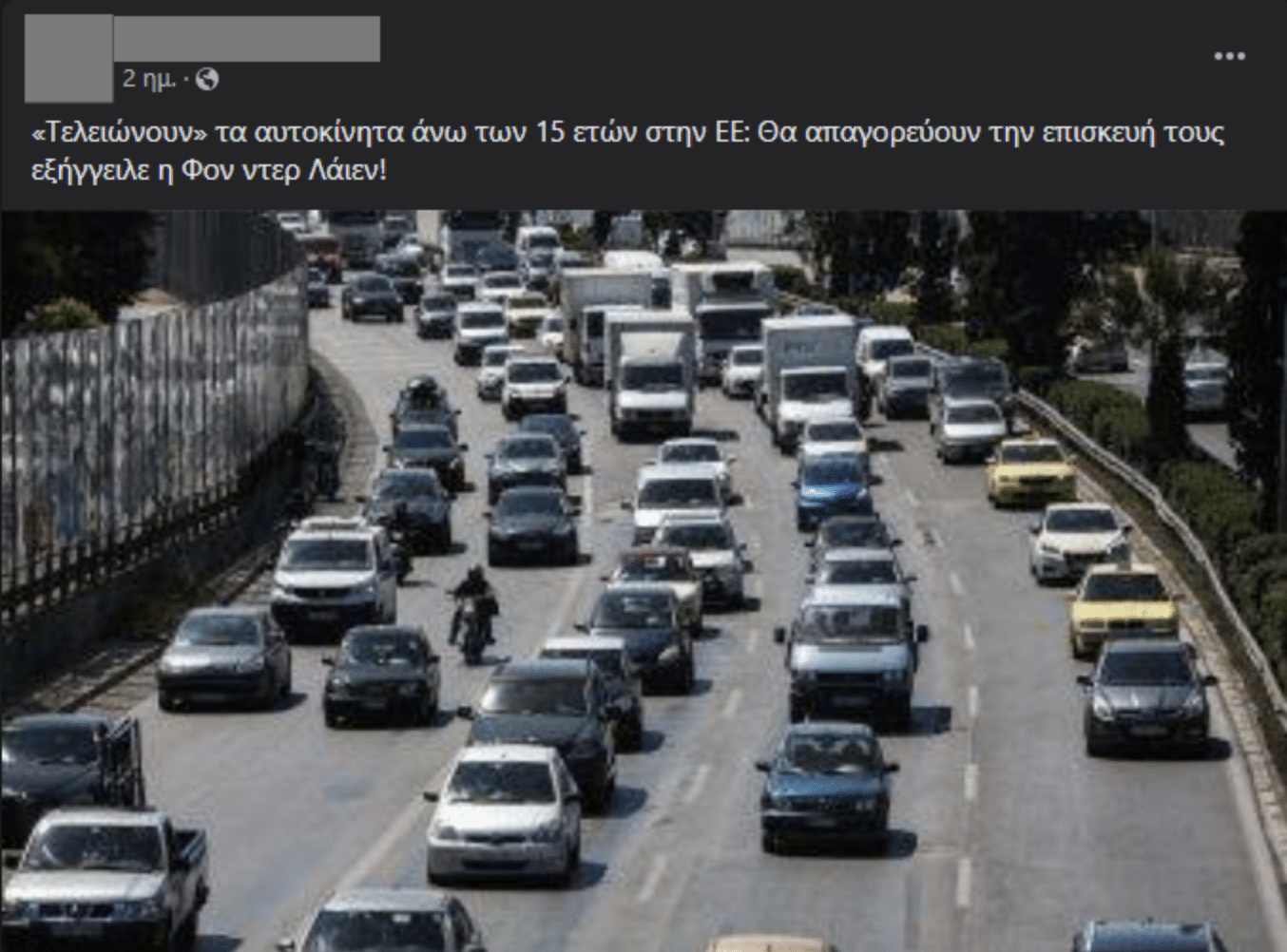 Τις τελευταίες ημέρες εμφανίστηκε και διαδίδεται, με σημαντική απήχηση, ισχυρισμός σύμφωνα με τον οποίο η Ευρωπαϊκή Επιτροπή θέλει να απαγορεύσει την επισκευή αυτοκινήτων ηλικίας 15 ετών και άνω, βάζοντας με αυτό τον τρόπο τέλος στην κυκλοφορία τους. Όπως διαβάζουμε σε άρθρα στον ηλεκτρονικό Τύπο και σε αναρτήσεις σε μέσα κοινωνικής δικτύωσης, απώτερος σκοπός της παραπάνω ενέργειας είναι η επιβάρυνση των πολιτών με πρόσθετα έξοδα, καθώς θα αναγκαστούν να αντικαταστήσουν το αυτοκίνητό τους με κάποιο πιο σύγχρονο. Ερευνήσαμε τα στοιχεία και διαπιστώσαμε πως κάτι τέτοιο δεν ευσταθεί. Ας δούμε τι ισχύει.