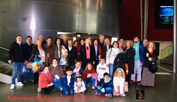 Μικροί και μεγάλοι ως μέλη και φίλοι της Κυθηραϊκής Αδελφότητας Πειραιώς-Αθηνών, έφυγαν σοφότεροι και χαρούμενοι από την διαδραστική αυτή περιήγηση. Με την ολοκλήρωση της εκδήλωσης ακολούθησε και το σχετικό παιχνίδι των μικρών μελών της Αδελφότητας, στον εξωτερικό χώρο του ιδρύματος καθώς και ο καφές των μεγαλύτερων μελών στον εσωτερικό χώρο του, ανταλλάσσοντας απόψεις και σκέψεις γύρω από το θέαμα που είχαμε την ευκαιρία να παρακολουθήσουμε.