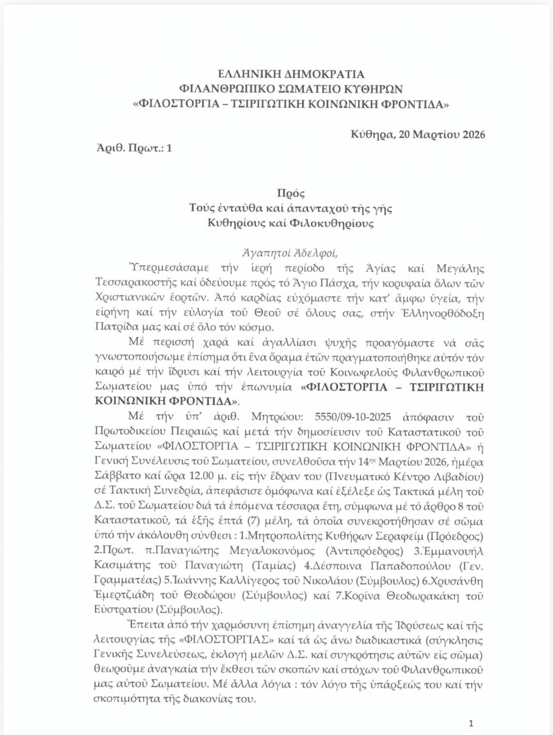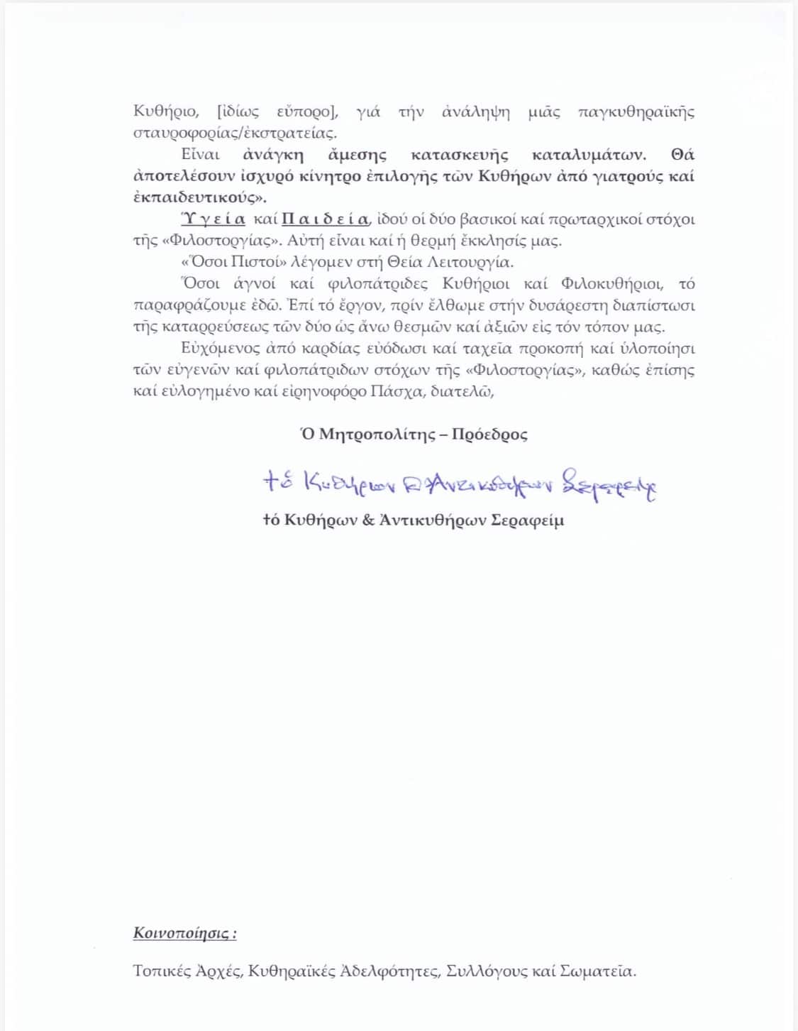 Ανακοινώσεις _ Δελτία Τύπου ΔΗΜΟΣΙΑ ΕΚΚΛΗΣΗ ΠΡΟΣ ΤΟΥΣ ΘΕΣΜΟΥΣ ΜΑΣ ΣΕΒ. ΜΗΤΡ. ΚΥΘΗΡΩΝ ΣΕΡΑΦΕΙΜ ΕΚ ΜΕΡΟΥΣ ΤΗΣ “ΦΙΛΟΣΤΟΡΓΙΑΣ” την Μαρ 21, 2026 53 Advertisement