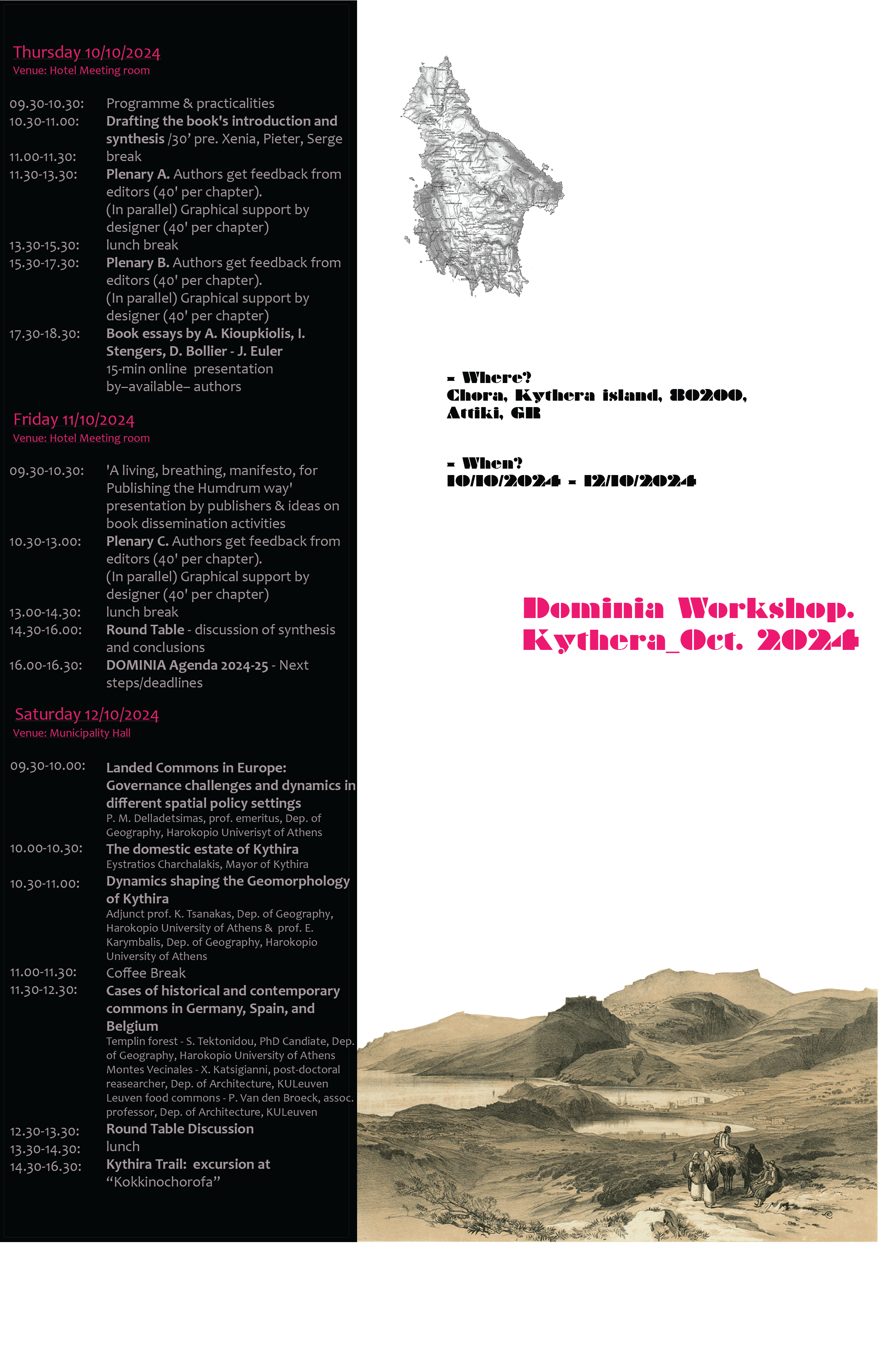 Ημερίδα ανοιχτή για το κοινό, στο Συνεδριακό Κέντρο Φρατσιων στις 12.10.2024 (ώρα έναρξης 09.30), που διοργανώνεται στα πλαίσια του ευρωπαϊκού ερευνητικού προγράμματος Dominia, με θέμα περιπτώσεις διαχείρισης κοινοτικής και διακοινοτικής περιουσίας από τον ευρωπαϊκό χώρο.