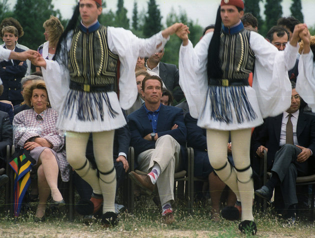YANNIS BEHRAKIS / REUTERS Μια διασωθείσα παράδοση παγκόσμιου βεληνεκούς: στην τελετή αφής της Ολυμπιακής φλόγας του 1991, παρεβρέθηκε ο Arnold Schwarzenegger.