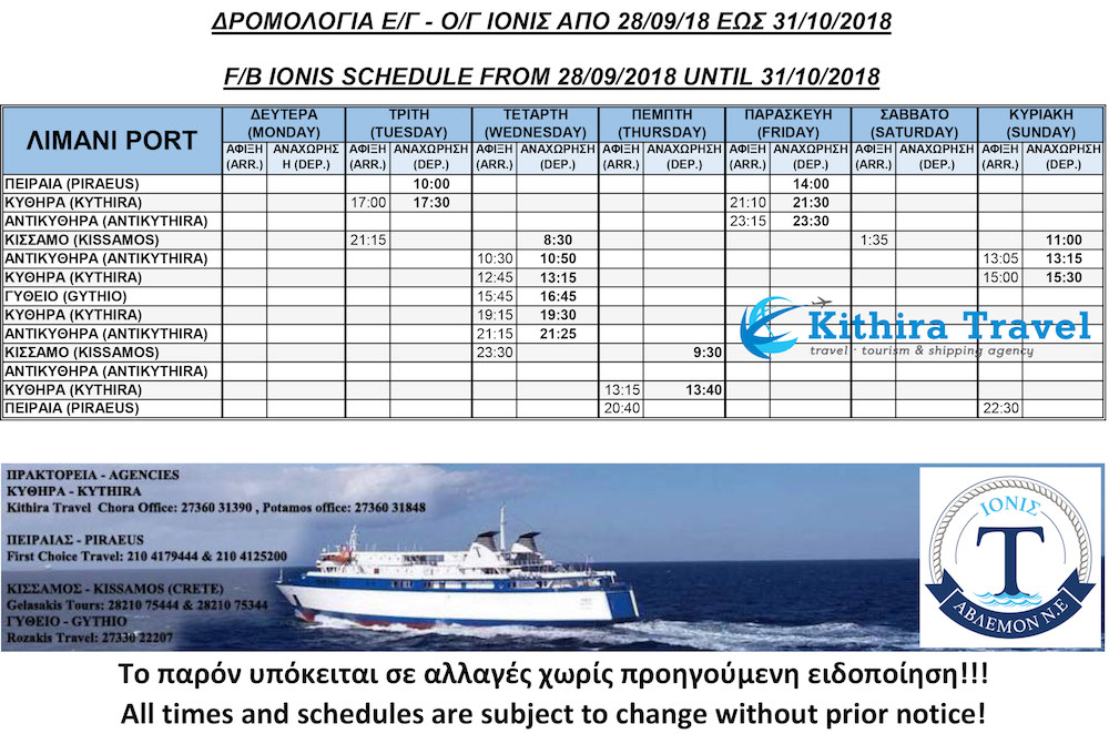 - Δρομολόγια ΙΟΝΙΣ 28/09/18 – 31/10/2018