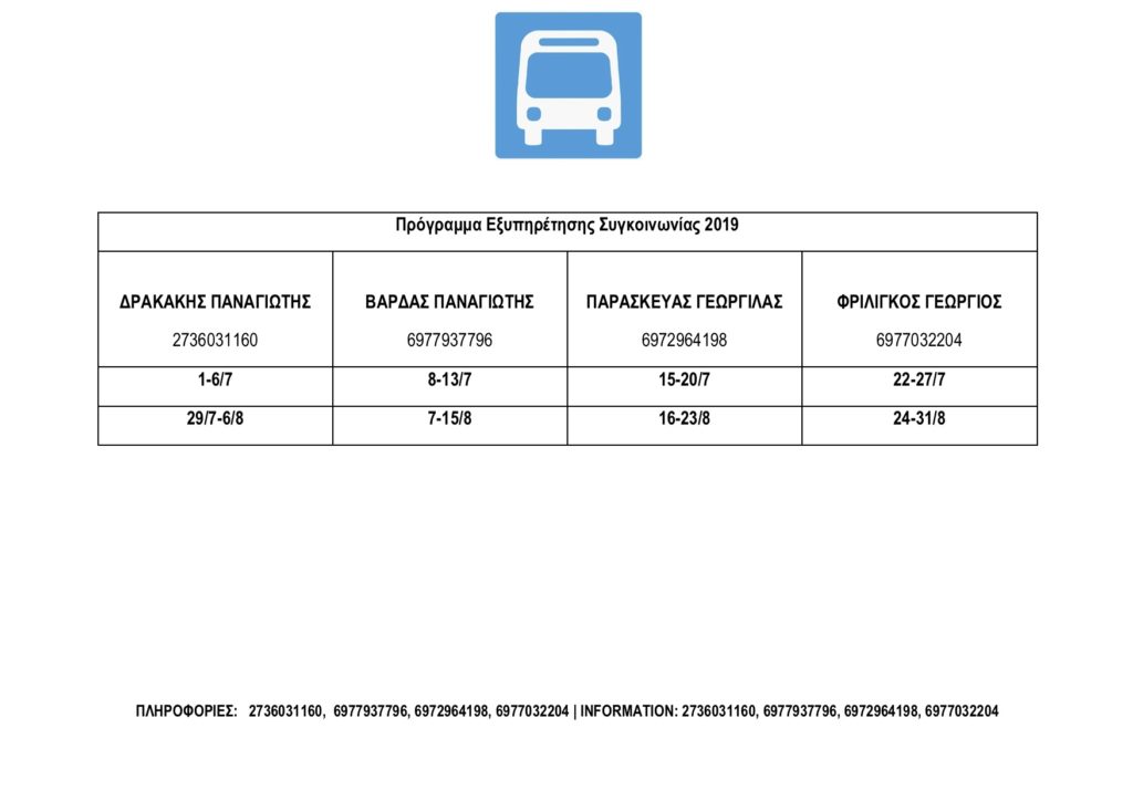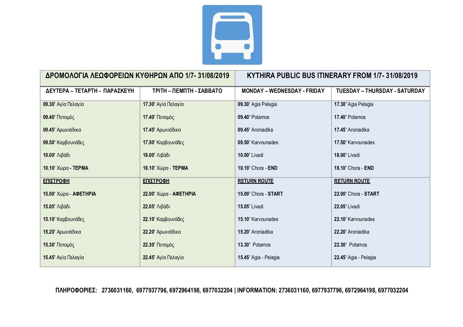 - Δρομολόγια λεωφορείων (εσωτερικής συγκοινωνίας) για το 2019