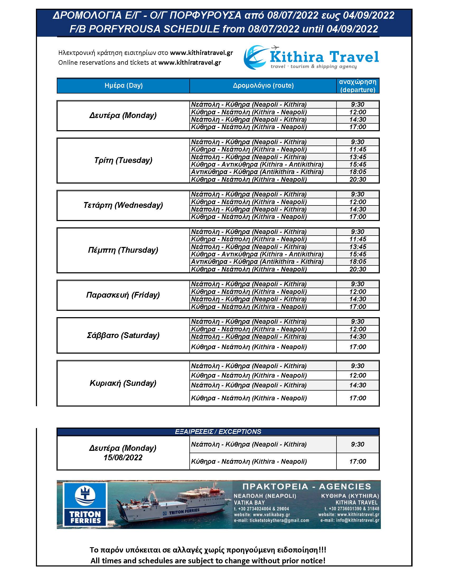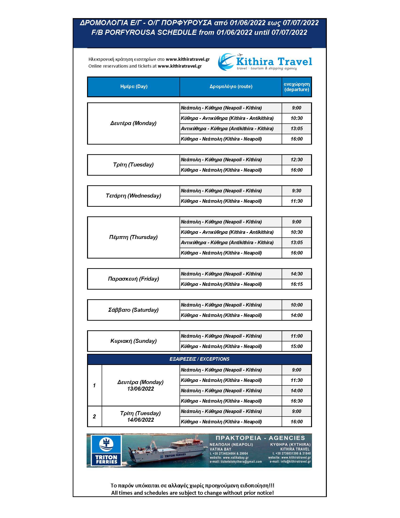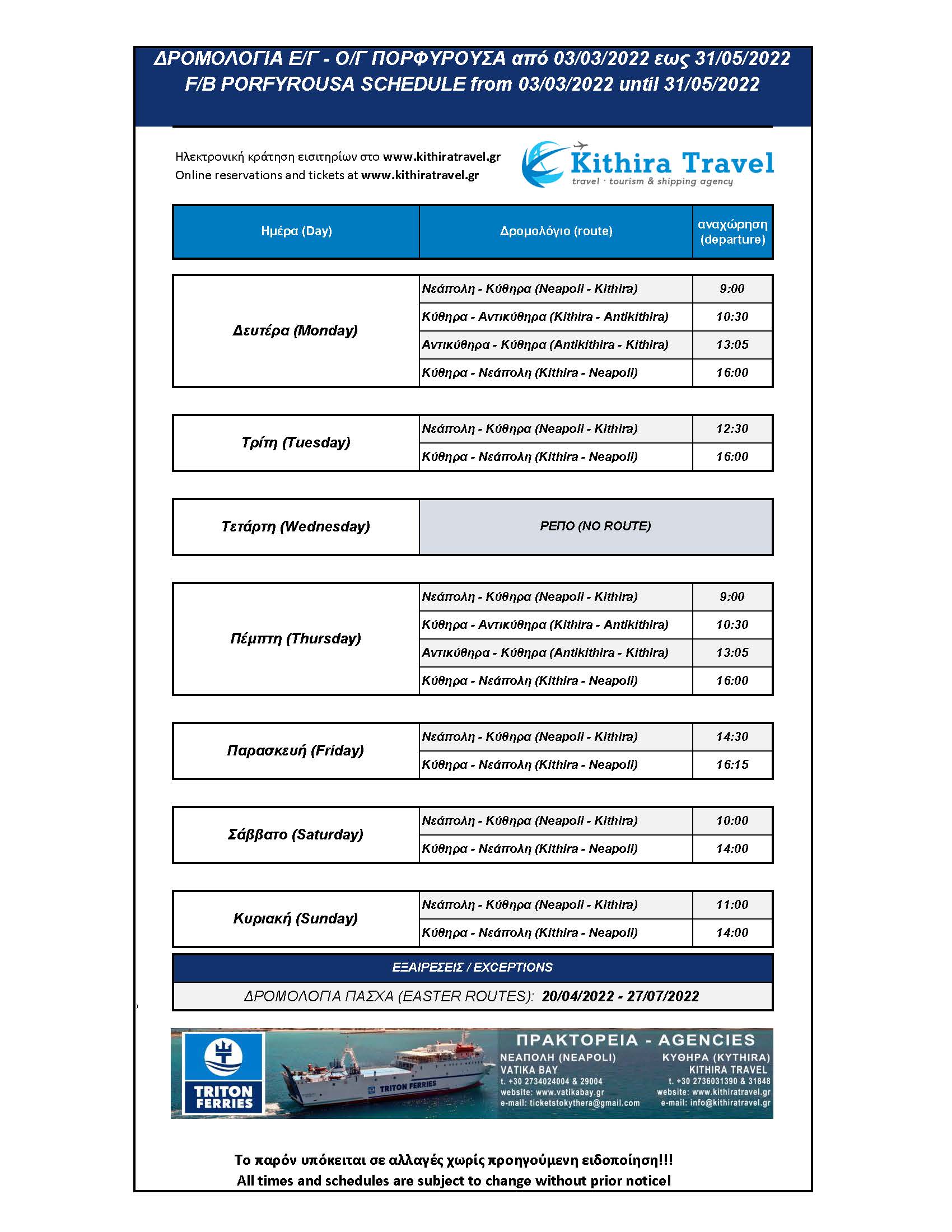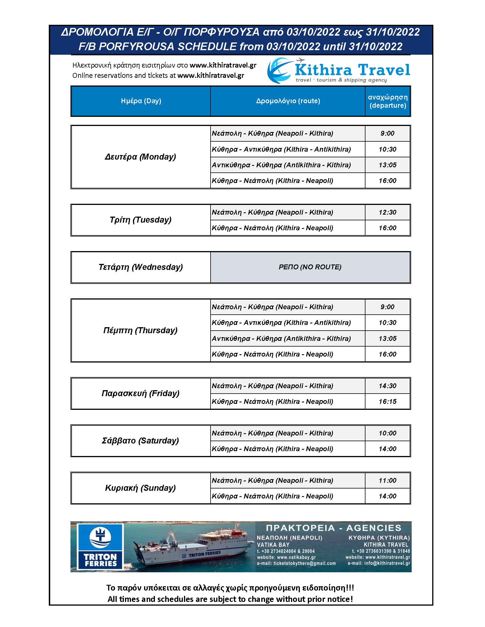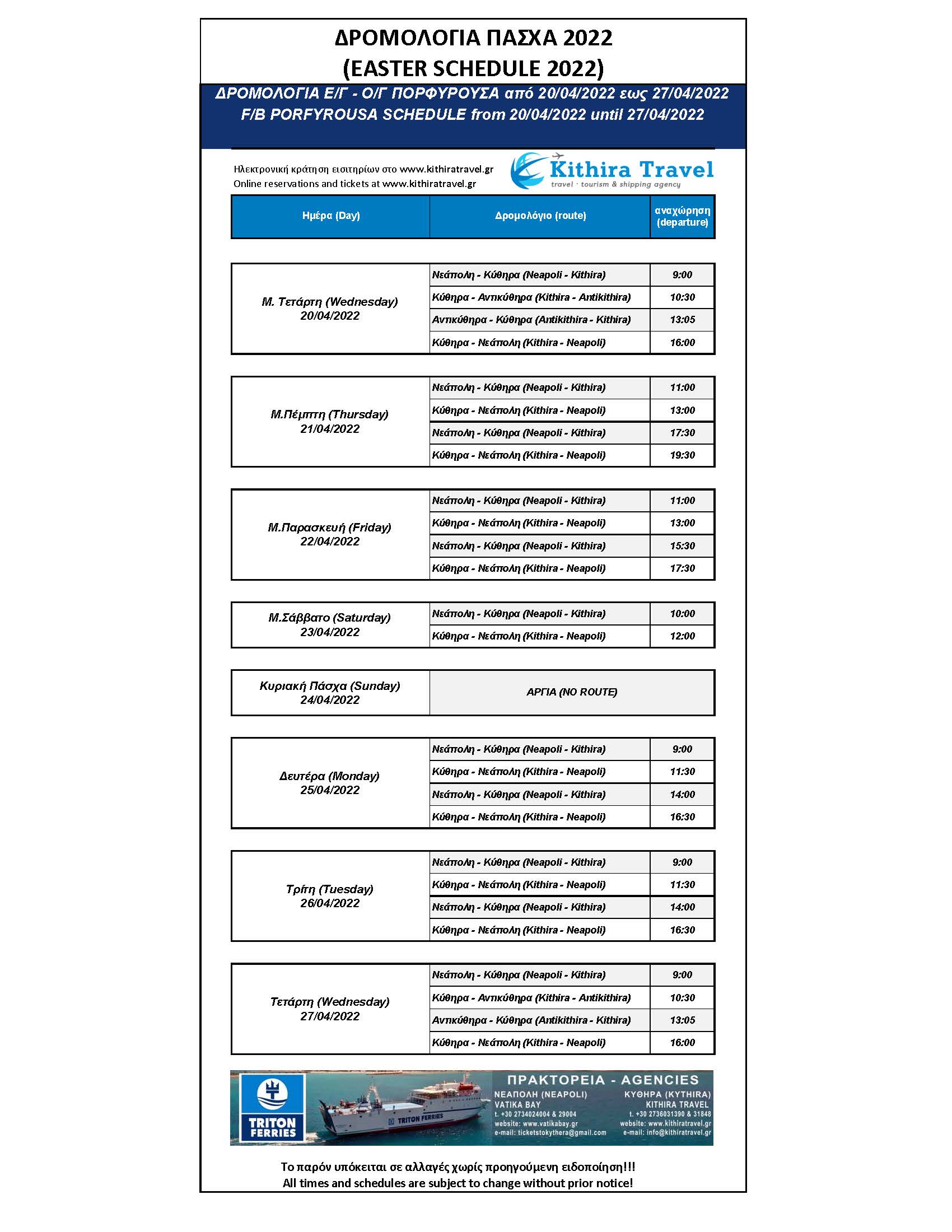- ΔΡΟΜΟΛΟΓΙΑ ΠΟΡΦΥΡΟΥΣΑ 2022