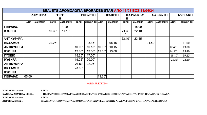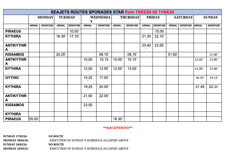 *Το παραπάνω Πρόγραμμα υπόκειται σε αλλαγές χωρίς προειδοποίηση. / Για πληροφορίες και κρατήσεις εισιτηρίων παρακαλώ καλέστε την drakakis tours, κεντρικό πρακτορείο για τα Κύθηρα και τα Αντικύθηρα.