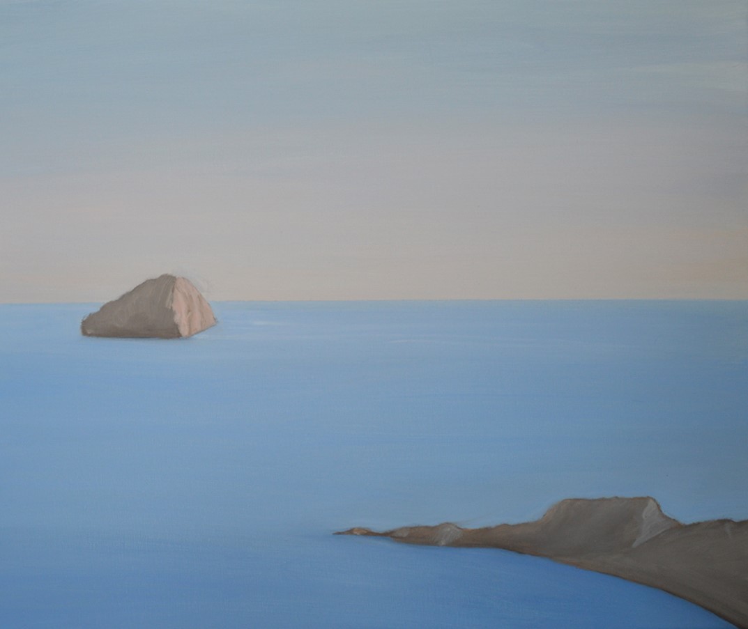 Η Μαρία Φιλιππακοπούλου δημιουργεί τοπία όπου το χρώμα είναι κατά βάση πλακάτο, έντονο ή ήρεμο, συνθέτοντας το ψυχικό και διανοητικό περιβάλλον του έργου.