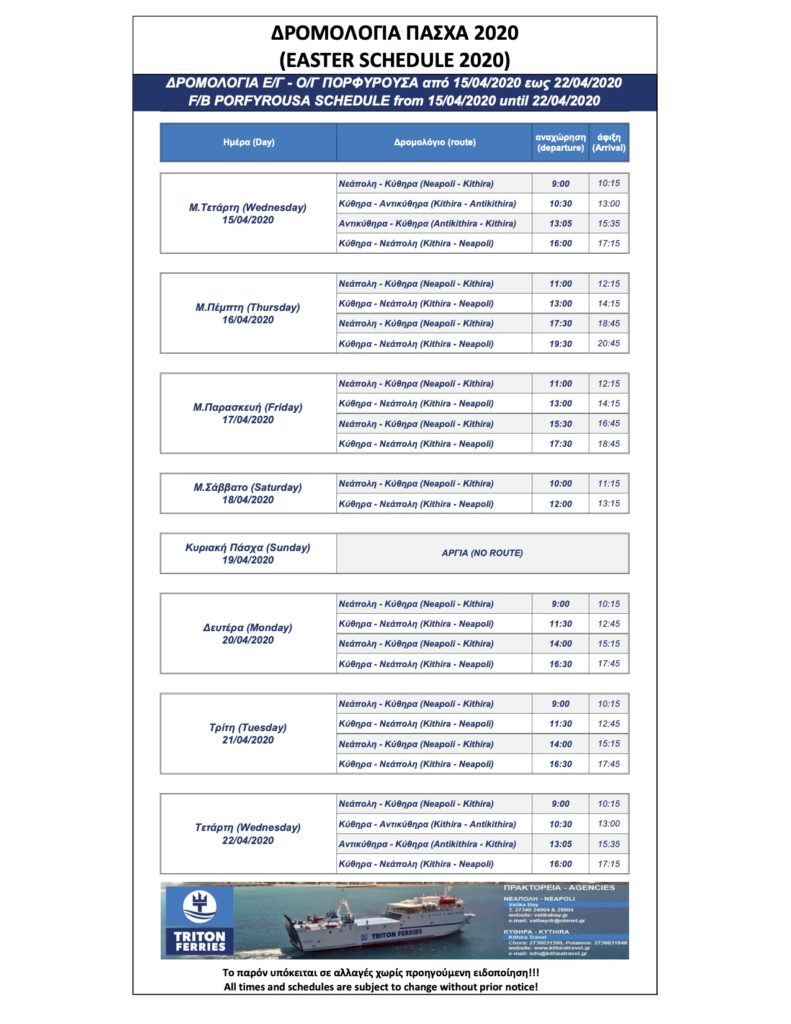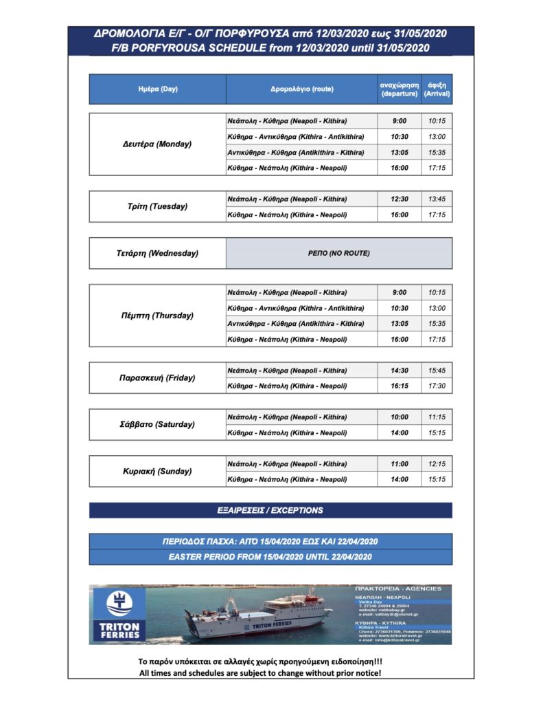 Συνημμένα, και τα προγράμματα έως και τις 31/05/2020. Για την υπόλοιπη σαιζόν θα σας τα στείλουμε μόλις εγκριθούν και τα δρομολόγια των Αντικυθήρων.