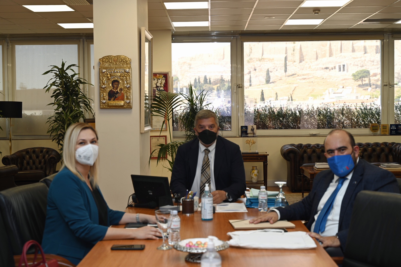 Στη συνάντηση μετείχαν επίσης η Αντιπεριφερειάρχης Νήσων Β. Θεοδωρακοπούλου Μπόγρη και ο Προϊστάμενος Τεχνικών Έργων της Περιφέρειας Αλ. Καλογερόπουλος.