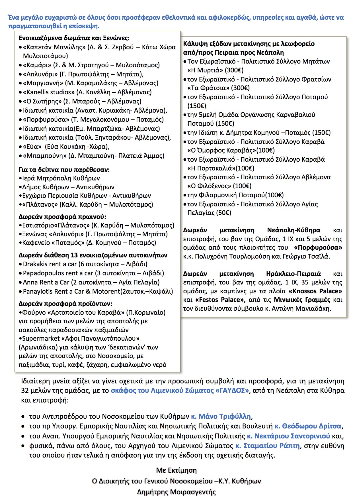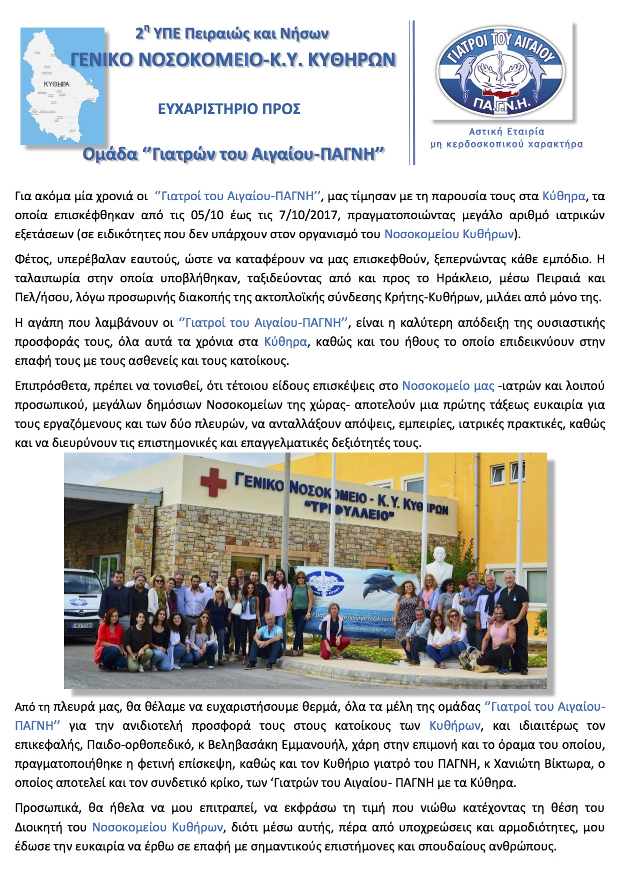 - Ευχαριστήριο προς ‘Γιατρούς του Αιγαίου-ΠΑΓΝΗ’ – ΟΡΘΗ ΕΠΑΝΑΛΗΨΗ