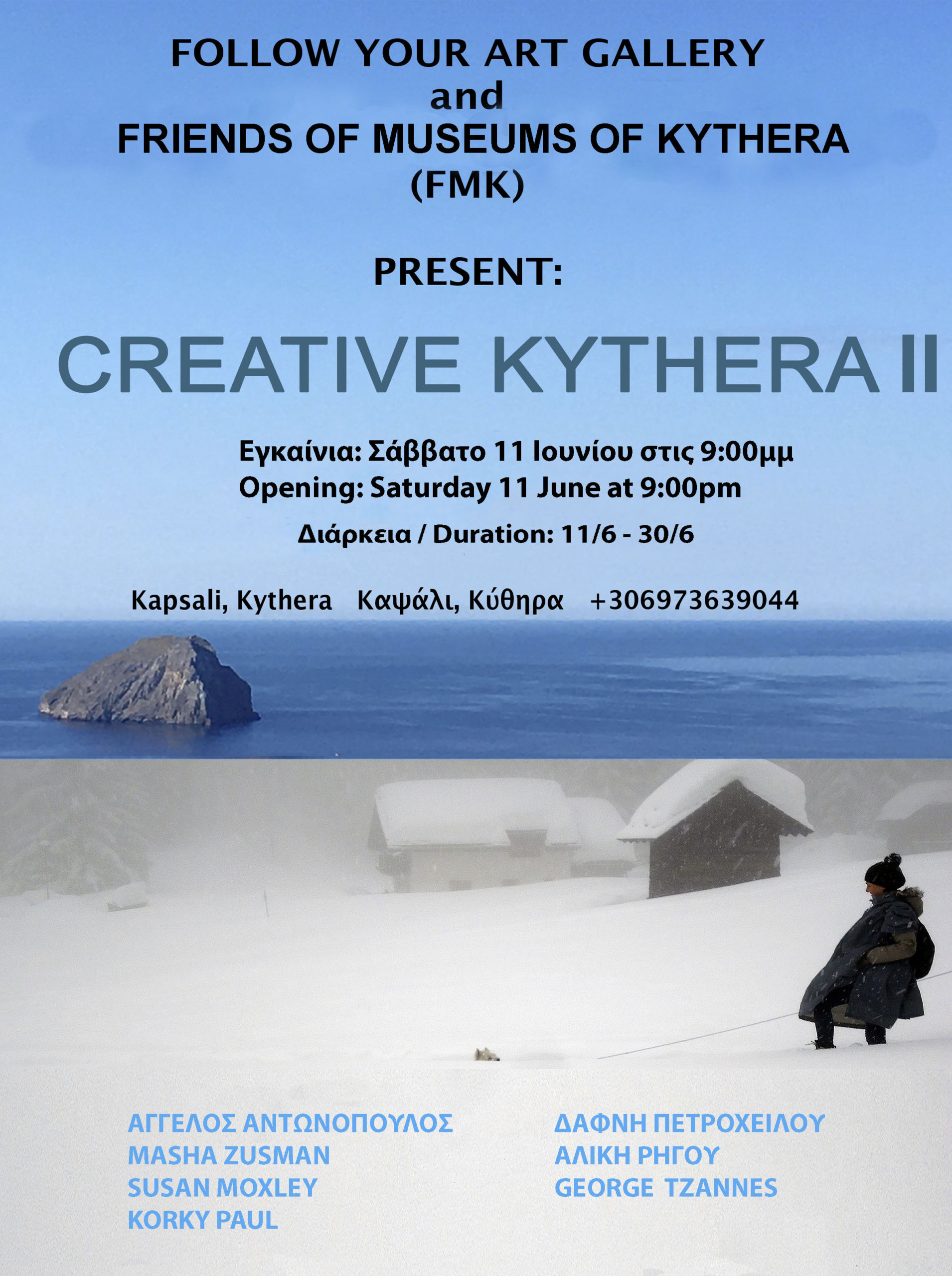 Η Γκαλερί Follow your Art σε συνεργασία με τους Φίλους Μουσείων Κυθήρων, όπως και το προηγούμενο καλοκαίρι, επιμελείται και εκθέτει έργα των καλλιτεχνών αυτών.