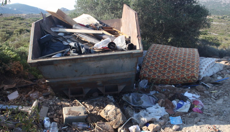Δύο μέτρα από την πινακίδα που βλέπετε, πάνω στο δρόμο προς Μυρτίδια, ασυνείδητοι γέμισαν το χώρο με μπάζα.
