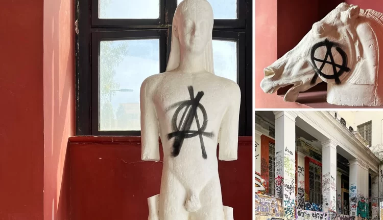 Εικόνες ντροπής στο Εθνικό Μετσόβιο Πολυτεχνείο: Βανδαλισμοί και συνθήματα πάνω σε γλυπτά και τοίχους