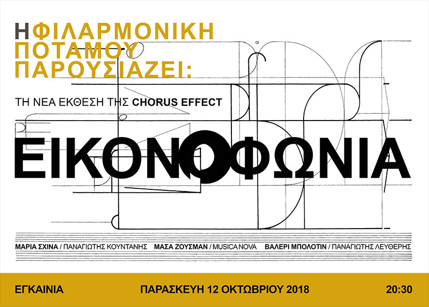 Η έκθεση “Eικονοφωνία” αποτελεί μια συνεργασία μεταξύ εικαστικών και μουσικών. Οργανώθηκε από την ομάδα Chorus Effect που αποτελείται από τους Masha Zusman, Μαρία Σχινά και Valery Bolotin, οι οποίοι, βασιζόμενοι σε κάποια συγκεκριμένη ιδέα ο καθένας, συνεργάστηκαν αντίστοιχα με τους μουσικούς Musica Nova, Παναγιώτη Κουντάνη και Παναγιώτη Λευθέρη στη δημιουργία εγκαταστάσεων με τη χρήση ποικίλων μέσων (βίντεο, ζωγραφική, γλυπτική, artbook κτλ)