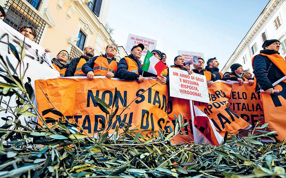 ΡΩΜΗ. Σε εισαγωγές ελαιολάδου ενδέχεται να προχωρήσει τον Απρίλιο η Ιταλία, εξαιτίας της ραγδαίας συρρίκνωσης της φετινής σοδειάς ελιάς στη χώρα. Η φετινή σοδειά, η μικρότερη των τελευταίων 25 ετών, ήταν μειωμένη κατά 57% σε σχέση με πέρυσι, με τα ακραία καιρικά φαινόμενα να ευθύνονται γι’ αυτό. Πέρα από την ελάχιστη βροχόπτωση, τον παγετό της περασμένης εβδομάδας και τους ισχυρούς ανέμους σε όλη την Ιταλία, η χώρα αντιμετώπισε το 2018 έντονο φαινόμενο θερινής ξηρασίας, όπως εξηγεί σε άρθρο της η εφημερίδα The Guardian.