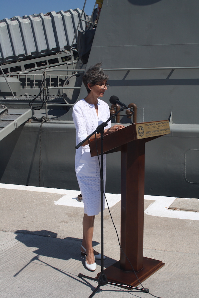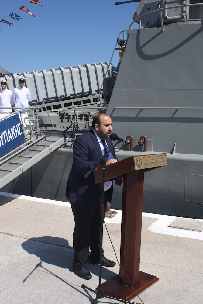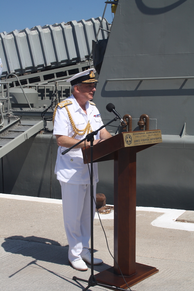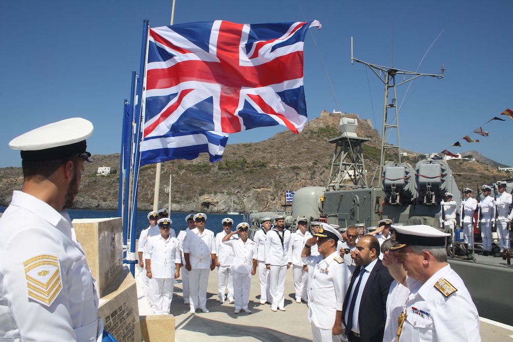 Ακολούθως μίλησε ο Δήμαρχος αναφερθείς στις εκδηλώσεις μνήμης για τους νεκρούς του Β’ Παγκοσμίου και την προάσπιση των αρχών της ελευθερίας και της δημοκρατίας από τους λαούς που πολέμησαν τους ναζί. Ακολούθησαν σύντομοι χαιρετισμοί του Αρχηγού του ΓΕΝ Αντιναυάρχου Ν. Τσούνη, του Αρχηγού του Βασιλικού Ναυτικού της Μεγ. Βρετανίας Ναυάρχου sir Fhilip Jones, της πρέσβειρας της Μεγ. Βρετανίας, όπως προανεφέρθη και έγιναν τα αποκαλυπτήρια της τιμητικής πλάκας, ενώ ακολούθησε η ανάκρουση των εθνικών ύμνων των δύο χωρών.