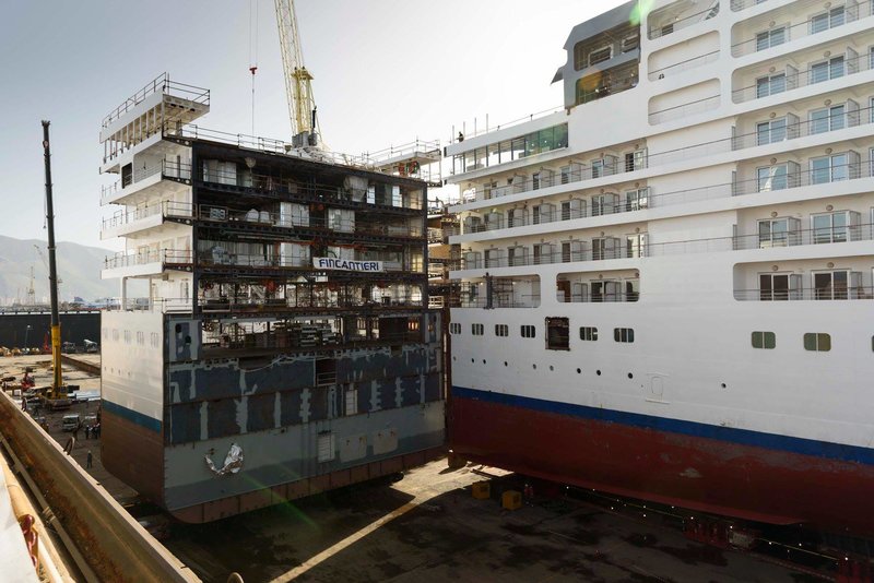 Το περίπλοκο τεχνικό κατόρθωμα, που βρίσκεται σε εξέλιξη στο ναυπηγείο Fincantieri στο Παλέρμο της Ιταλίας, απαιτεί πάνω από 500 ειδικευμένους εργαζόμενους και θα καλύψει περίπου 450.000 ανθρωποώρες.