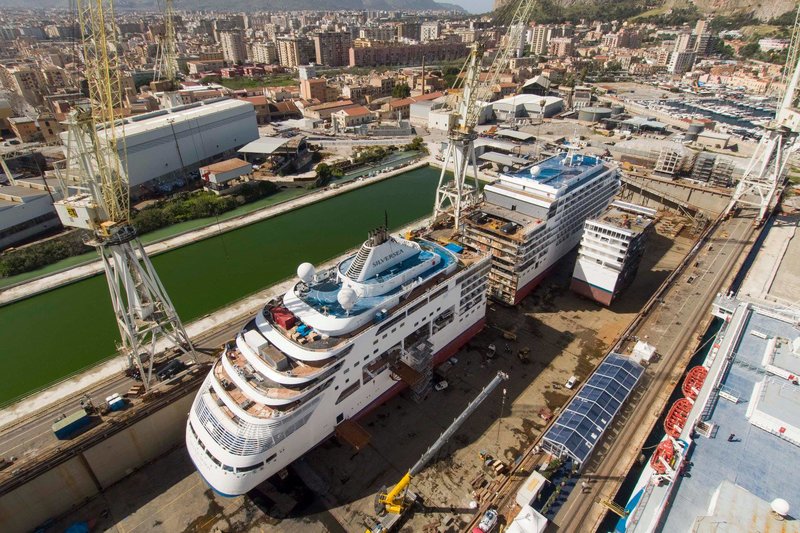 Το περίπλοκο τεχνικό κατόρθωμα, που βρίσκεται σε εξέλιξη στο ναυπηγείο Fincantieri στο Παλέρμο της Ιταλίας, απαιτεί πάνω από 500 ειδικευμένους εργαζόμενους και θα καλύψει περίπου 450.000 ανθρωποώρες.